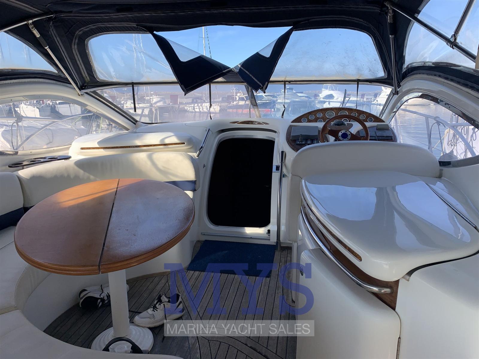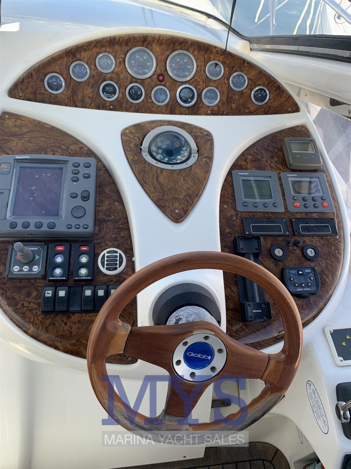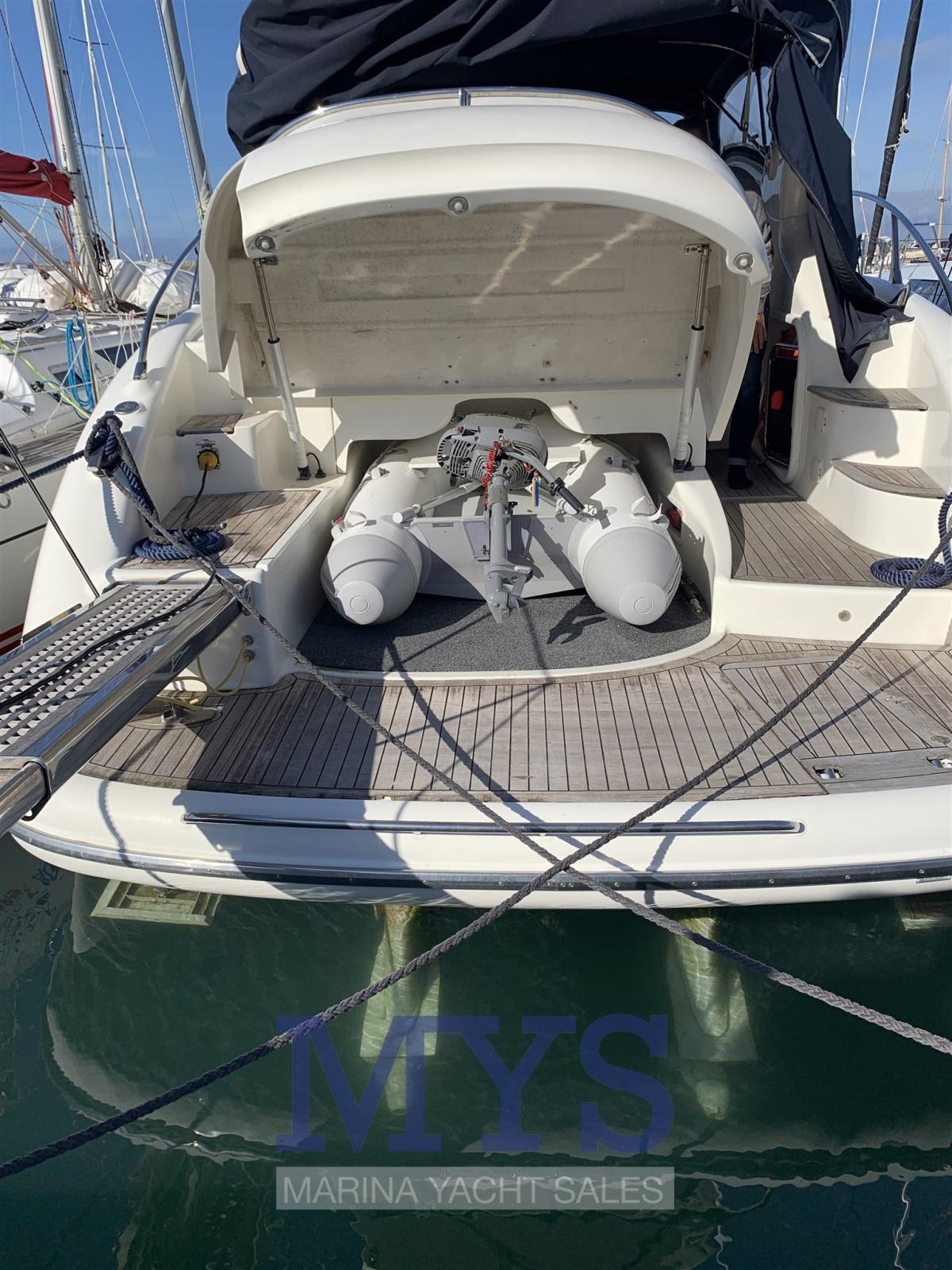 Alarme moteur, Eau sous pression, Douche de cockpit, Flaps hydrauliques, Garage à annexe, Indicateurs de flaps, Éclairage de courtoisie, Passerelle, Plateforme arrière, Cockpit en teck, Prise de quai, Rollbar, Guindeau électrique, Echelle de bain, table de cockpit, Corne.