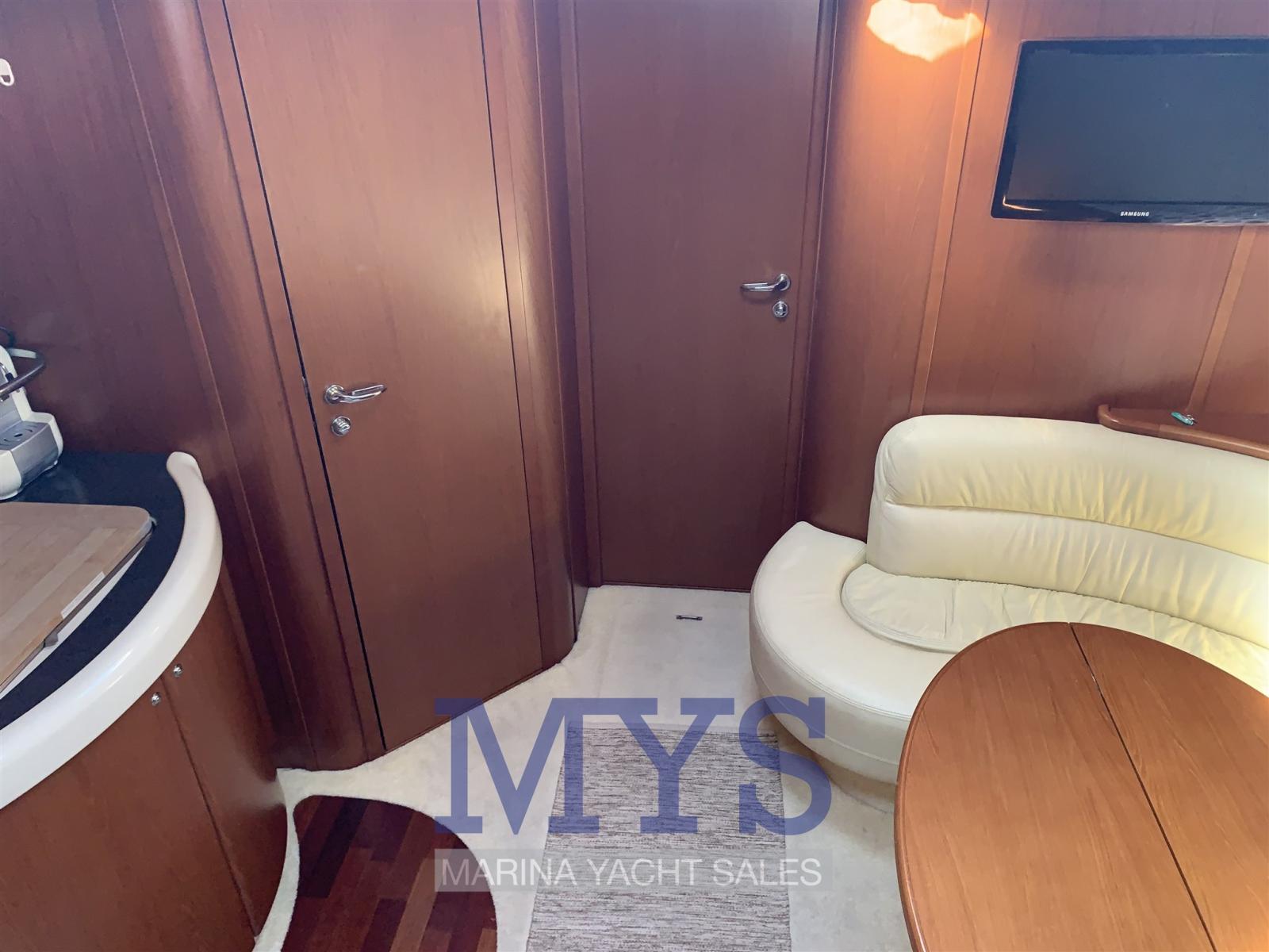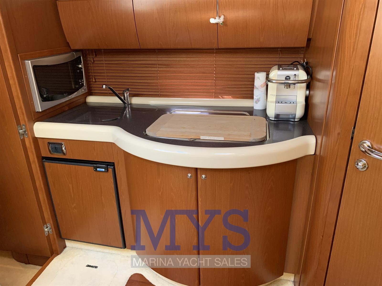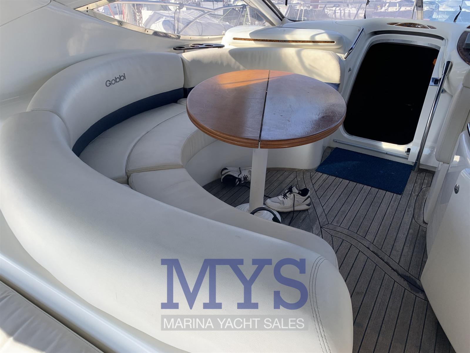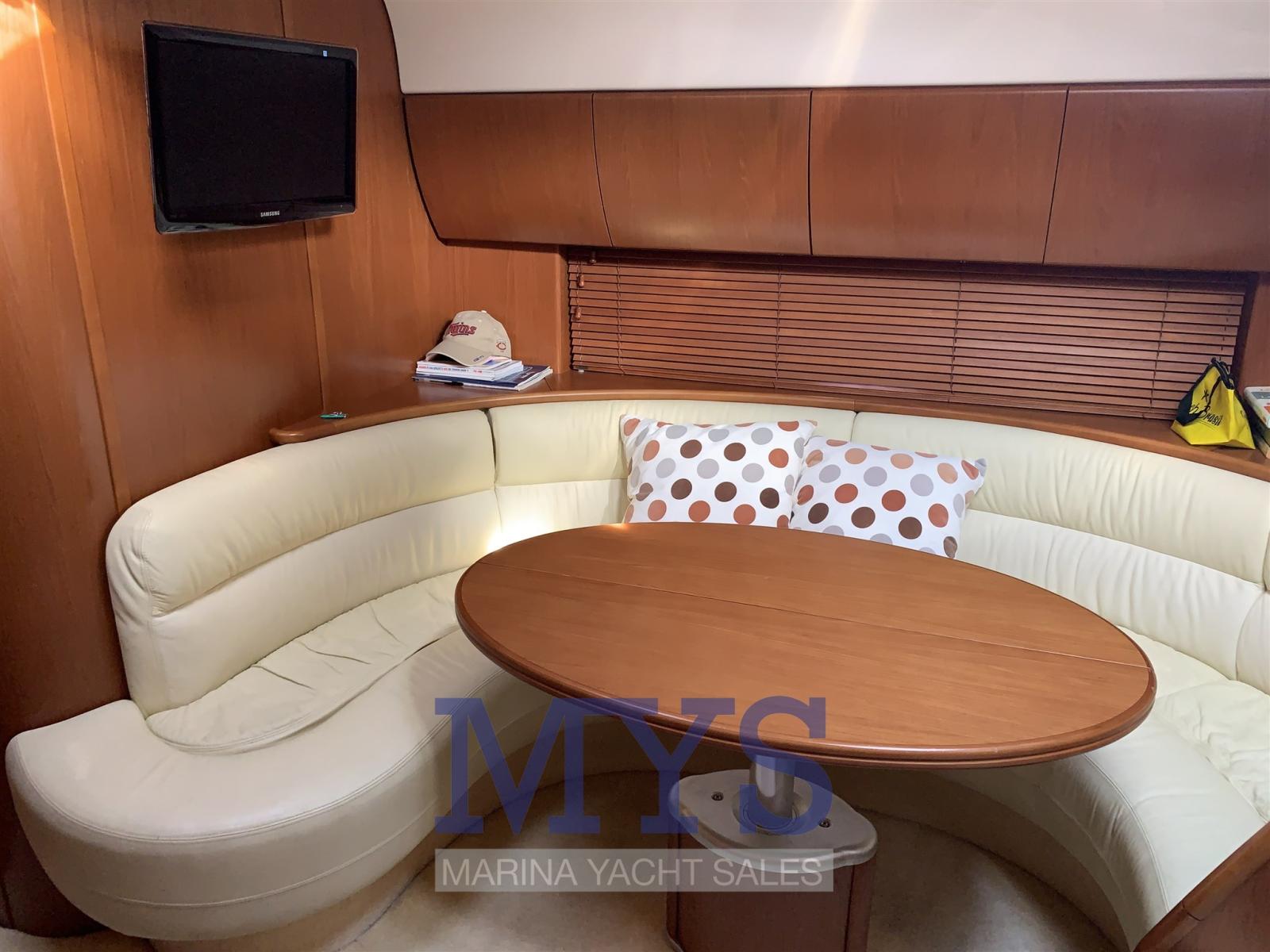 Alarme moteur, Eau sous pression, Douche de cockpit, Flaps hydrauliques, Garage à annexe, Indicateurs de flaps, Éclairage de courtoisie, Passerelle, Plateforme arrière, Cockpit en teck, Prise de quai, Rollbar, Guindeau électrique, Echelle de bain, table de cockpit, Corne.