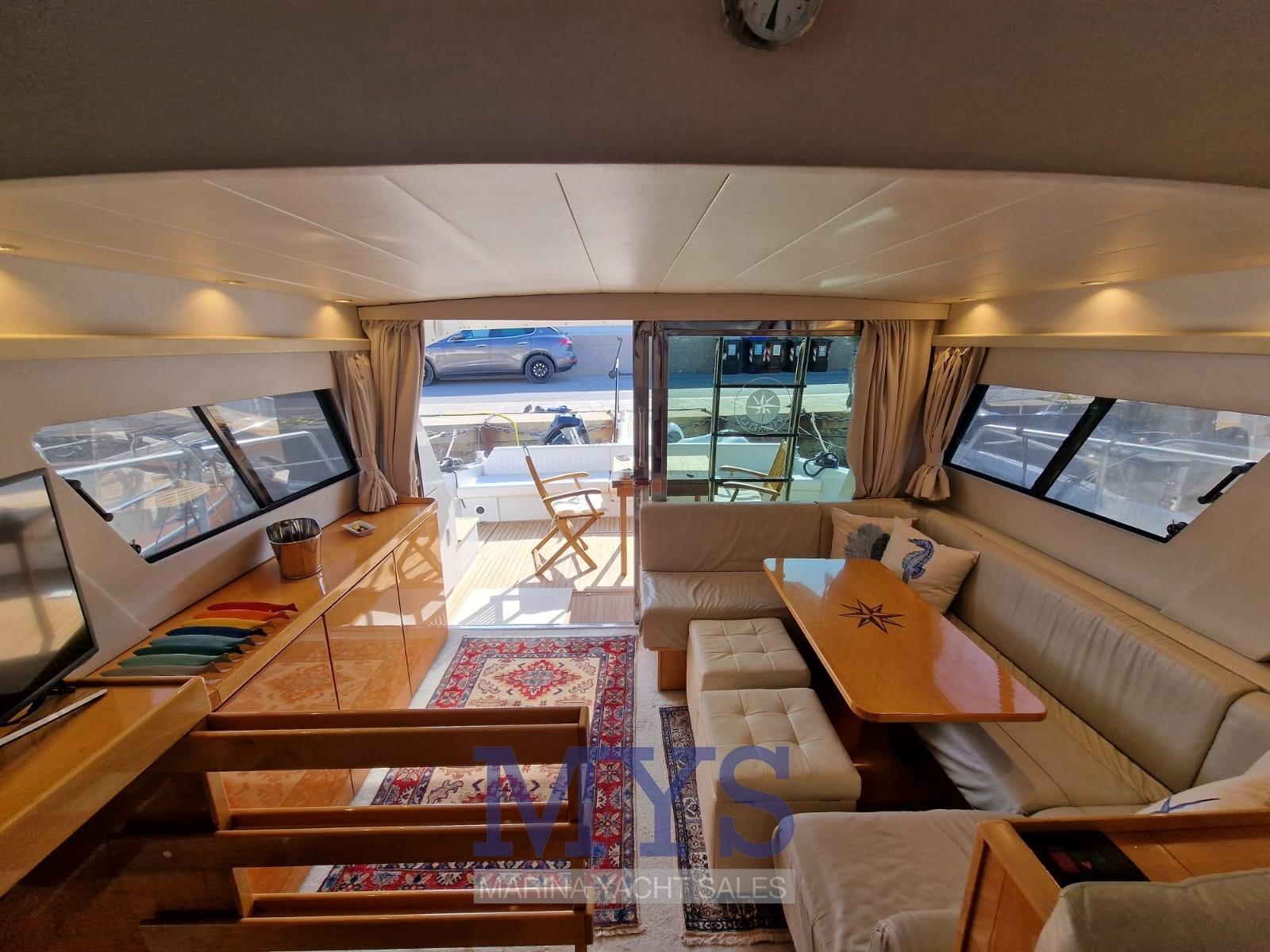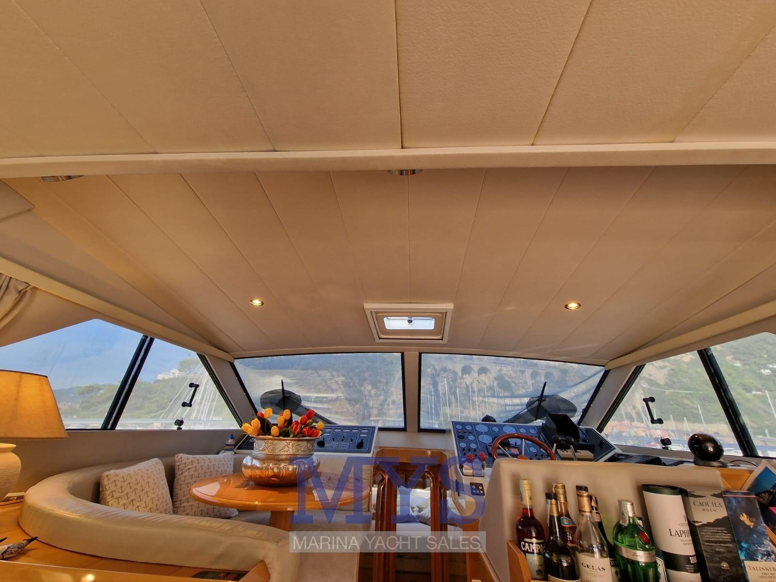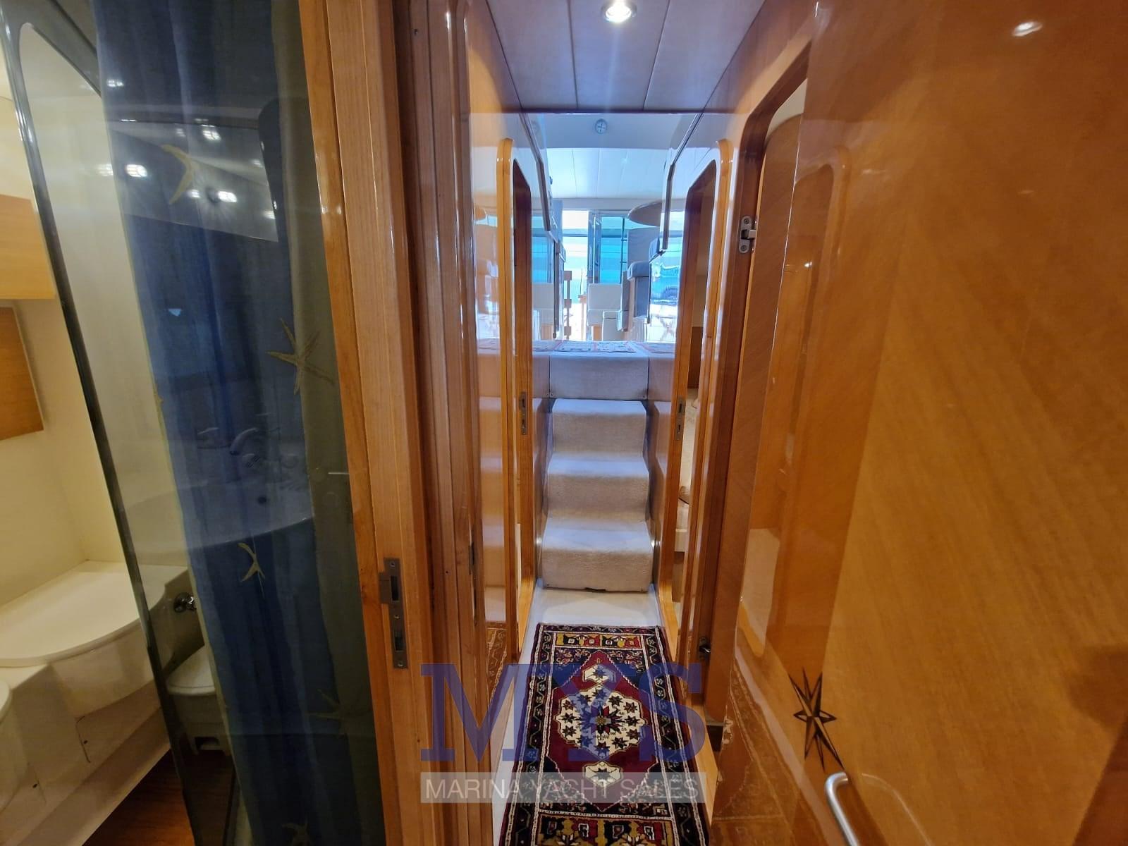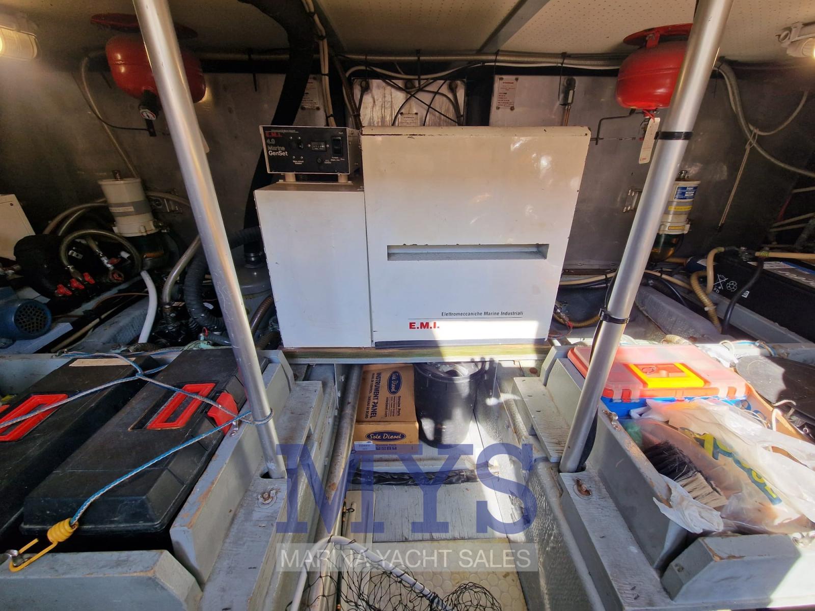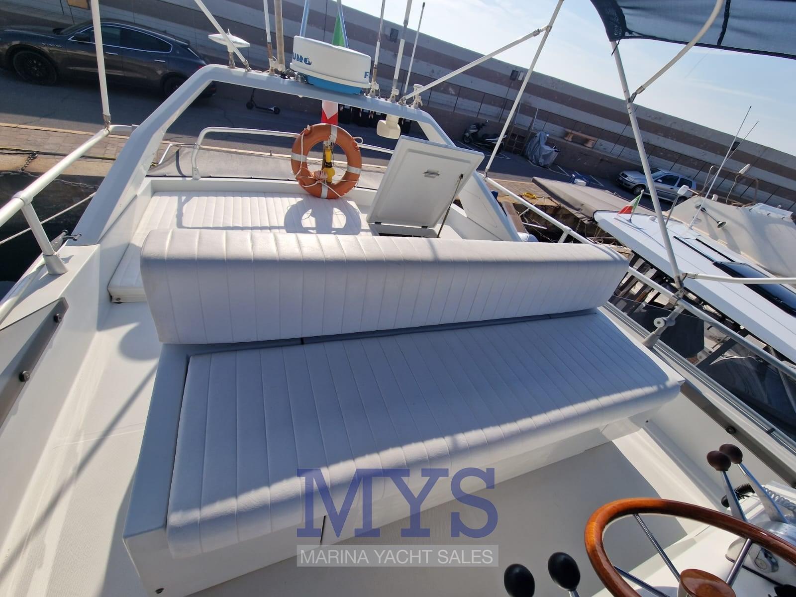Alarme moteur, Alarme de pompe de cale, Eau sous pression, Radeau de sauvetage (2024), 5 Batteries (170 Ah (2024)), Douche de cockpit, 2 Phare de poursuite (Poppa e Prua), Flaps hydrauliques, Extincteur(s) fixe(s), Indicateurs de flaps, Lavage de chaine, Éclairage de courtoisie (Pozzetto + scala), Spots sous-marins, Passerelle (Idraulica), Plateforme arrière (Maggiorata), 3 Pompe de cale automatique, Cockpit en teck, Prise de quai, Connexion eau sous pression à quai, Rollbar, Guindeau électrique, Echelle de bain, Annexe (mt. 3.50), 2 Winch électrique arrière, Winch électrique avant.