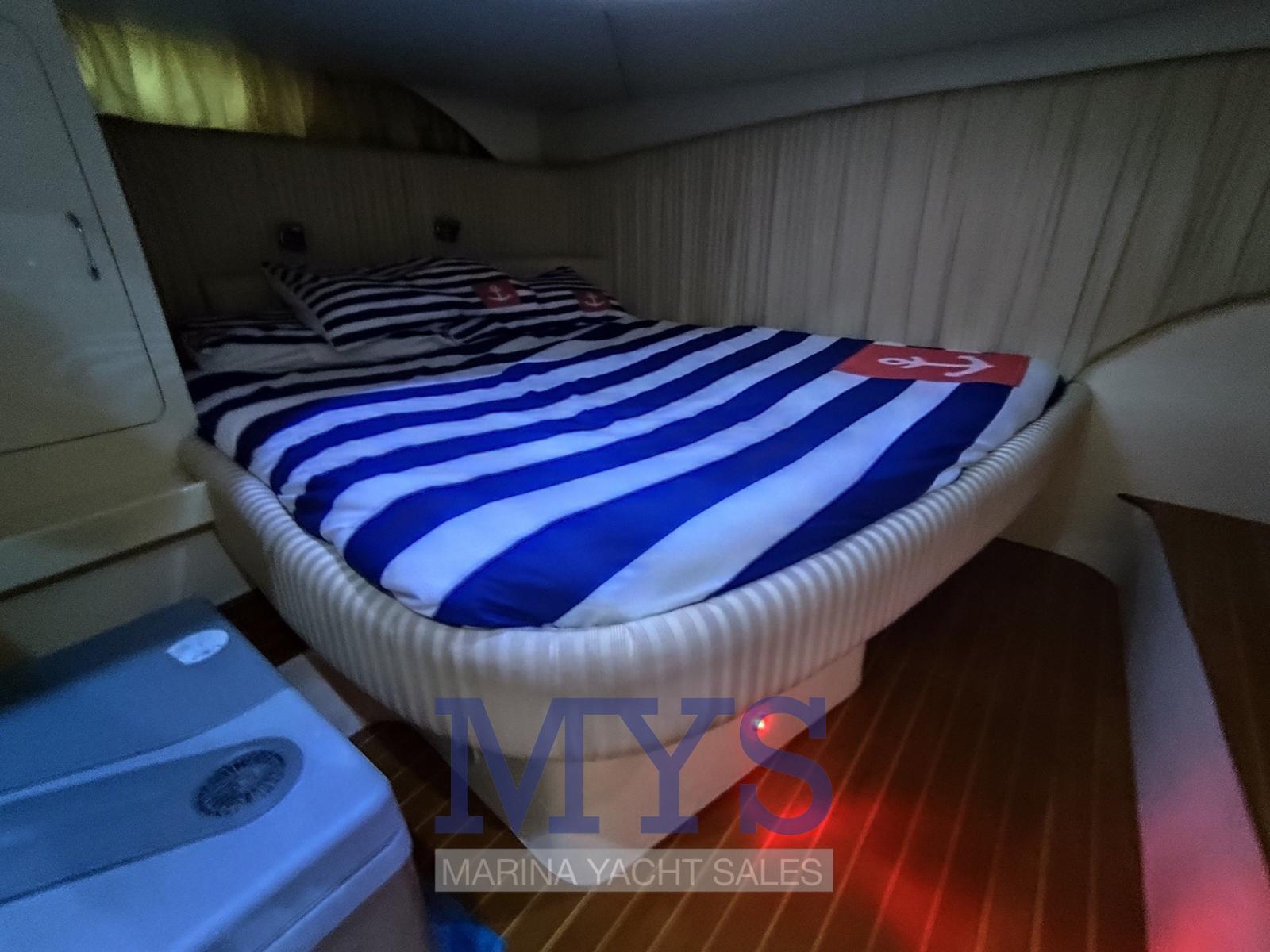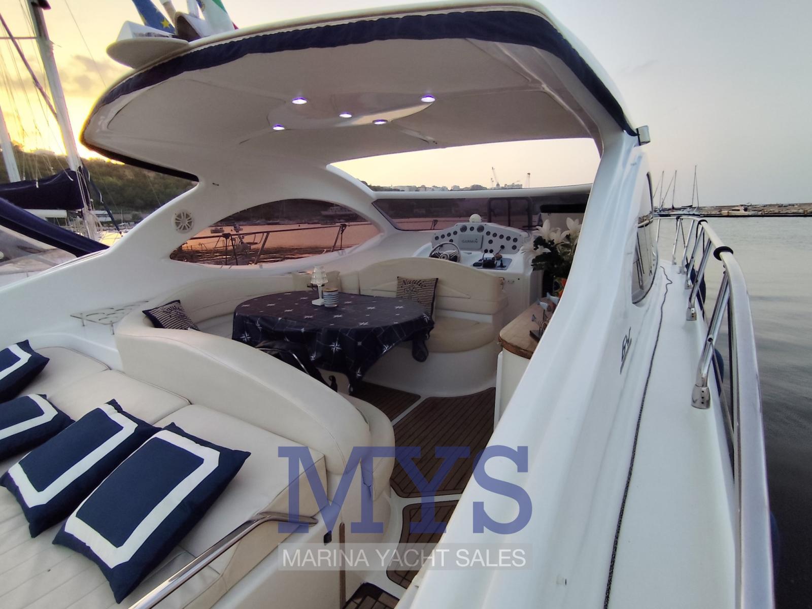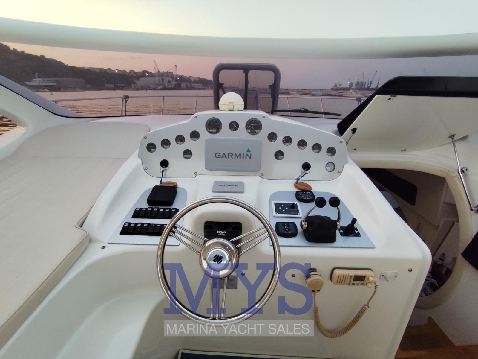 Alarme moteur, Eau sous pression, Couleur spéciale (scafo blu), Douche de cockpit, Phare de poursuite, Hard top, Lavabo dans le cockpit, Éclairage de courtoisie, Spots sous-marins, Passerelle (idraulica a scomparsa), Plateforme arrière (in teak), Pompe de cale automatique, Pompe de cale manuelle, Cockpit en teck, Prise de quai, Guindeau électrique, table de cockpit, Corne.