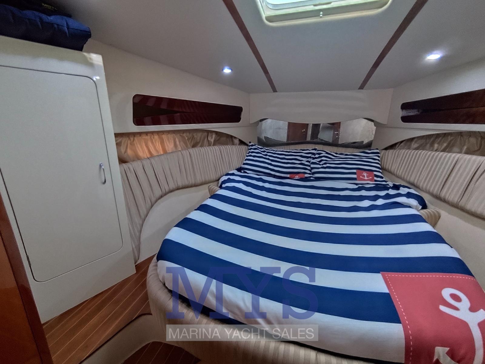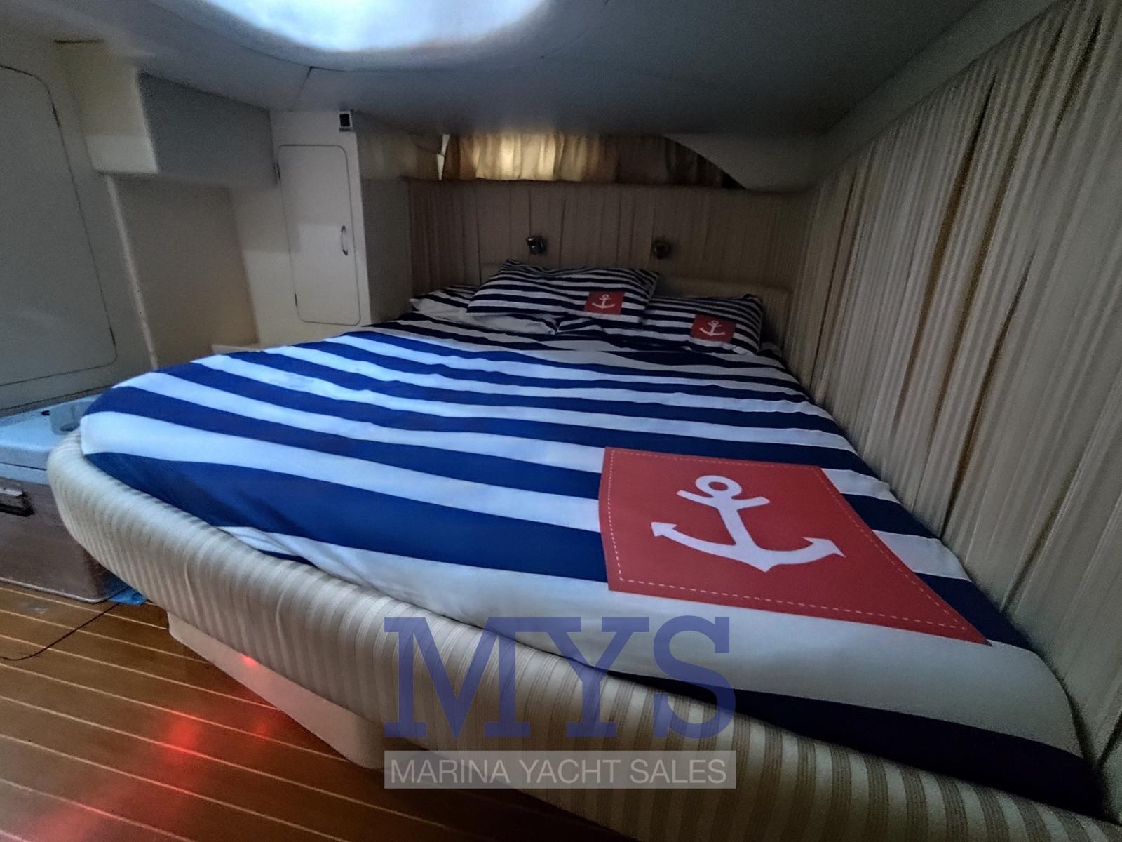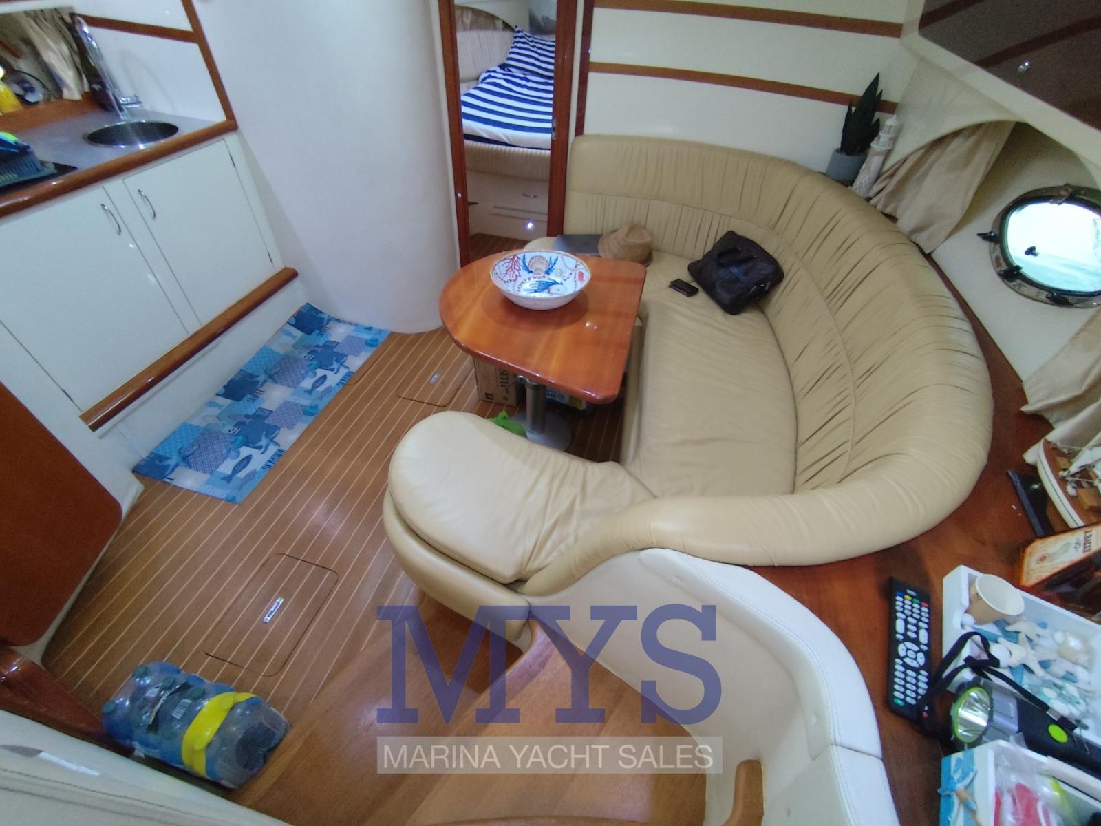 Alarme moteur, Eau sous pression, Couleur spéciale (scafo blu), Douche de cockpit, Phare de poursuite, Hard top, Lavabo dans le cockpit, Éclairage de courtoisie, Spots sous-marins, Passerelle (idraulica a scomparsa), Plateforme arrière (in teak), Pompe de cale automatique, Pompe de cale manuelle, Cockpit en teck, Prise de quai, Guindeau électrique, table de cockpit, Corne.