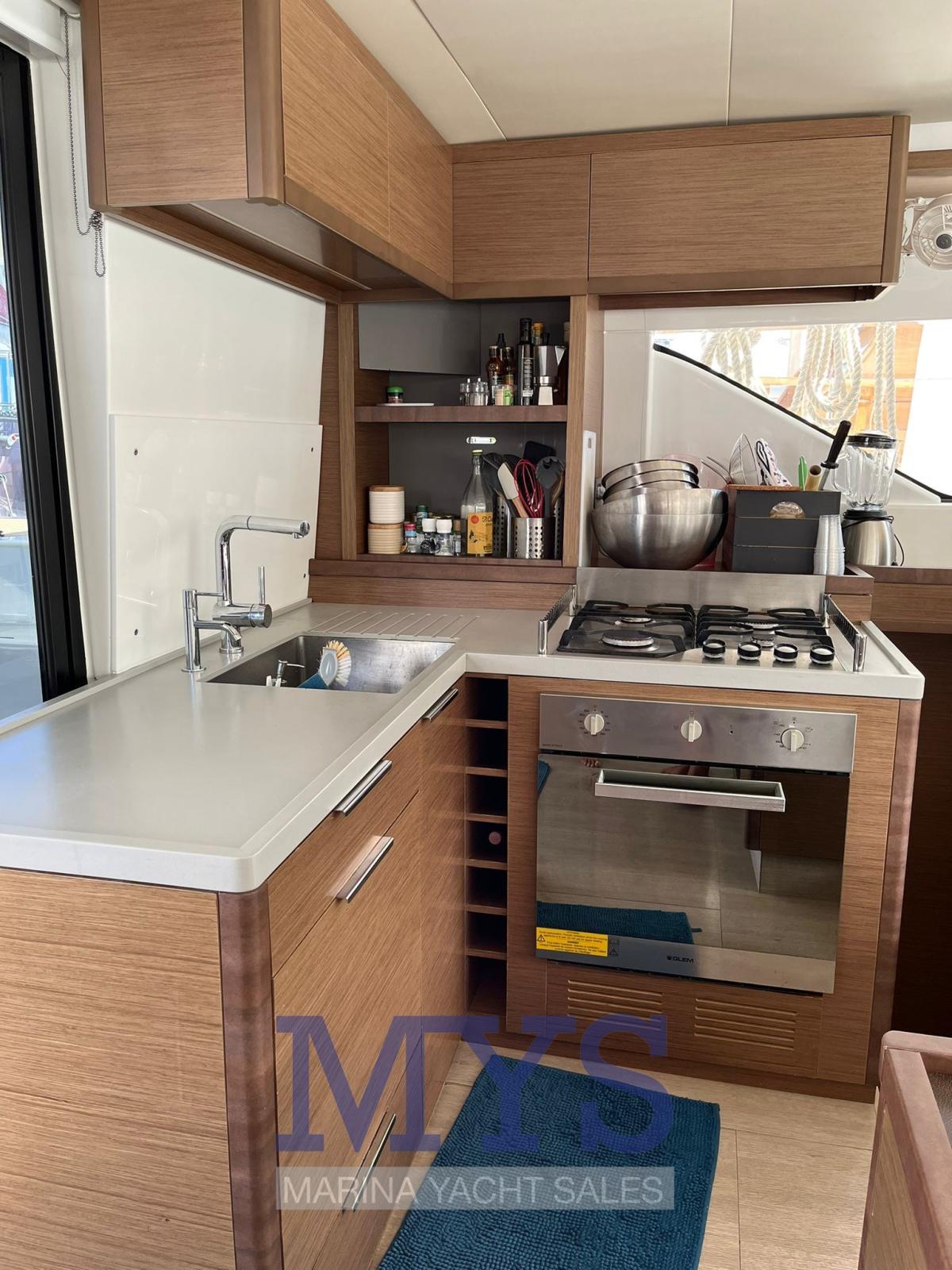 « Ce catamaran s’insère entre l’indiscutable 450 et le 52, offrant une alternative séduisante aux marins à la recherche d’un grand bateau de propriétaire « marin et moderne ». Le 50, avec son identité visuelle, son type de gréement et le design de la coque, offre de meilleures performances ainsi qu’une ligne unique. En effet, l’élégance du 50 séduit par la forme arrondie des coques, la générosité des espaces et la vue panoramique plus appréciée que jamais.