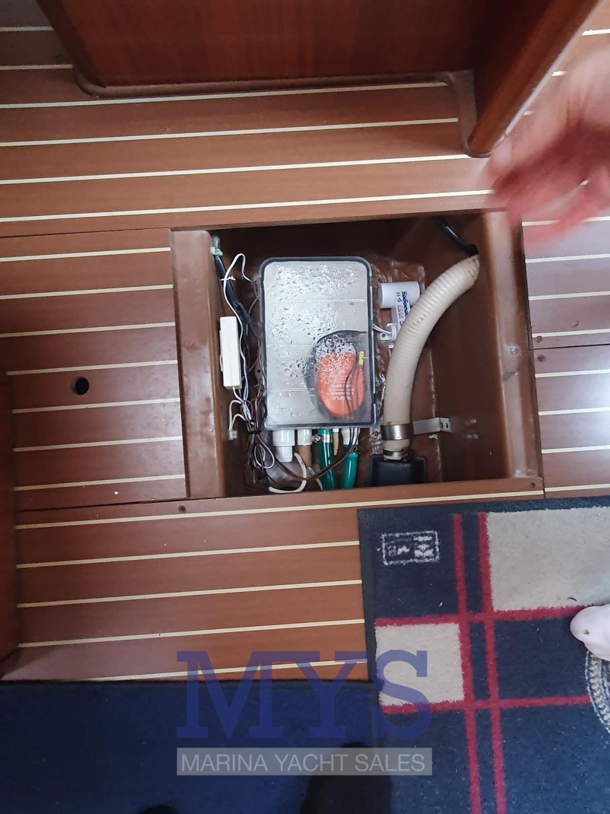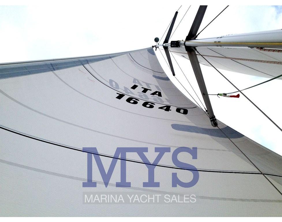 Alarme moteur, Alarme de pompe de cale, Ancre (Bruce), Eau sous pression, 3 Batteries (380 Ah), Chargeur de batterie (Mastervolt 50 Ah), Douche de cockpit (Calda/Fredda), Hélice de rechange (Max Prop tripala orientabili), Bossoir pour HB, Moteur d'annexe (Fuoribordo Honda 5 Hp 2015), Passerelle (manuale), Pompe de cale automatique, Pompe de cale manuelle, Cockpit en teck, Prise de quai, Connexion eau sous pression à quai, Guindeau électrique, Gréement monotoron (2018), Echelle de bain, Chaise support HB, table de cockpit, Annexe (Zodiac 2.40), Corne, 4 Winch (Harken).