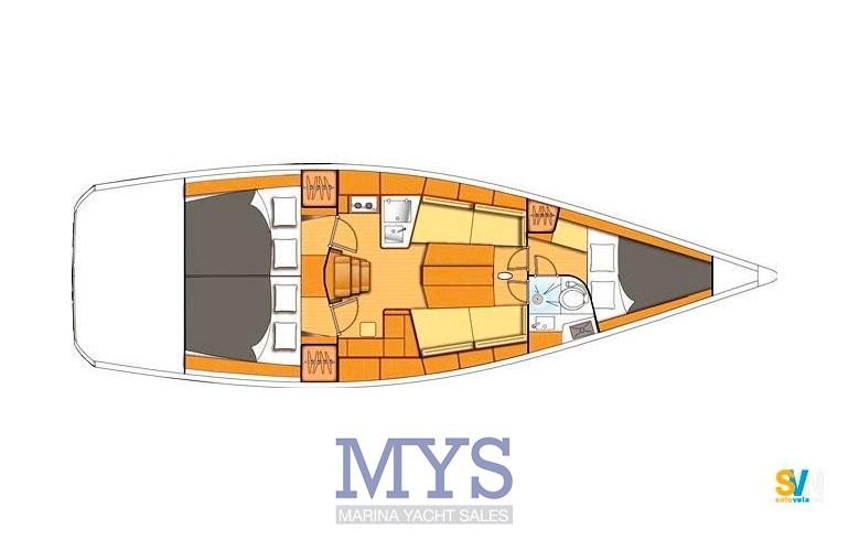 Une coque performante, un plan de voilure généreux et des solutions pratiques sur le pont font de ce bateau un modèle adapté aussi bien à la course qu’à la croisière rapide. Les avis sur le bateau sont partagés, il y a ceux qui le définissent comme presque parfait pour la croisière de course et ceux qui, en revanche, l’accusent d’être instable et un peu dur à la barre au près avec du vent. Quoi qu’il en soit, les ventes du bateau se sont plutôt bien déroulées et 550 exemplaires ont été construits. Construction du pont : superposition à la main Matériau du pont : sandwich de balsa Construction de la coque : couche à la main, matériau de la coque : coque solide et pavois sandwich de balsa