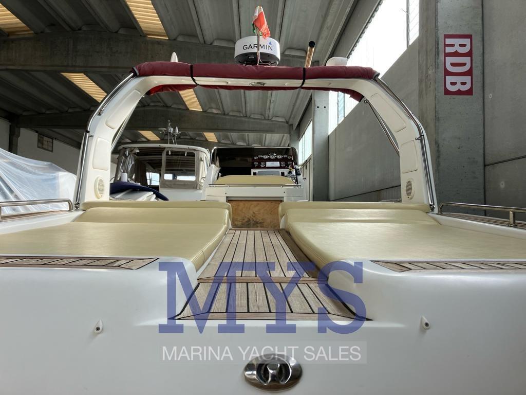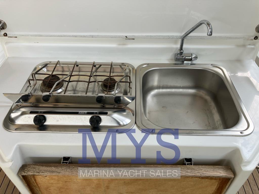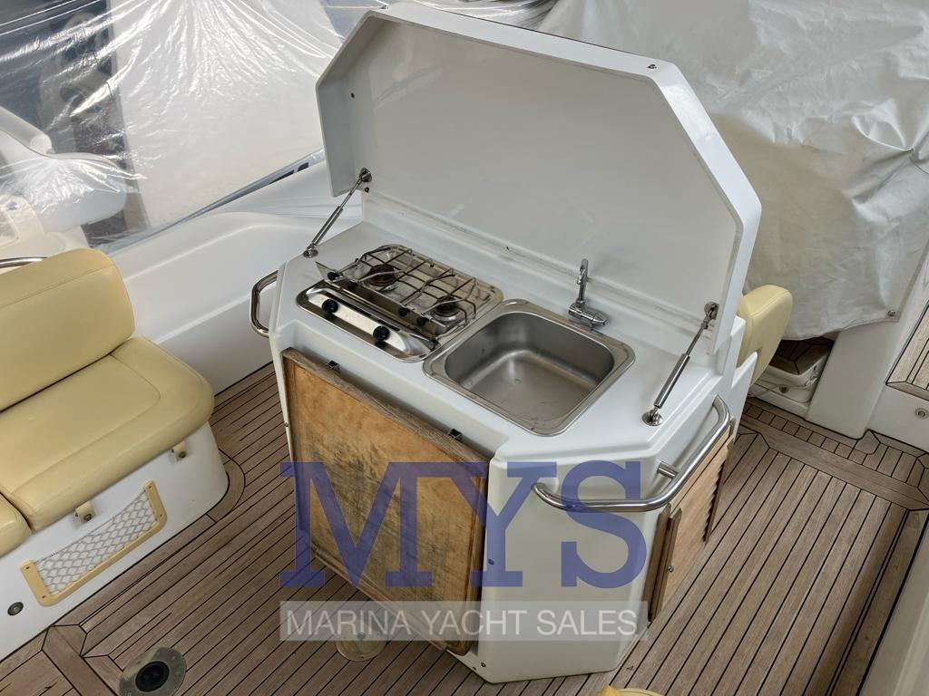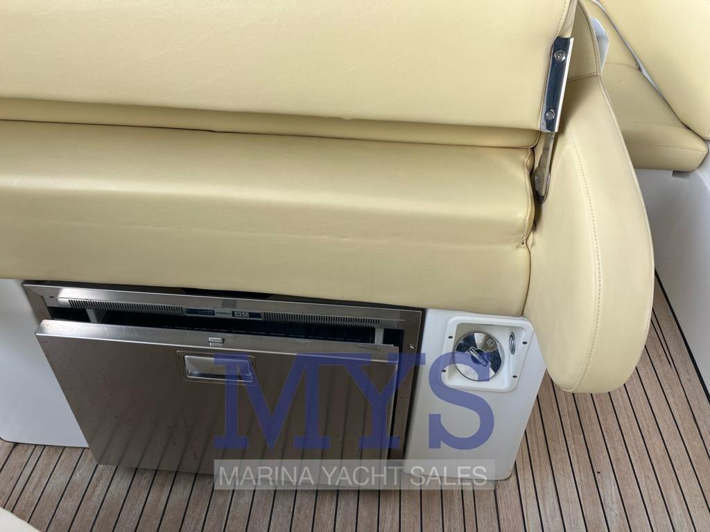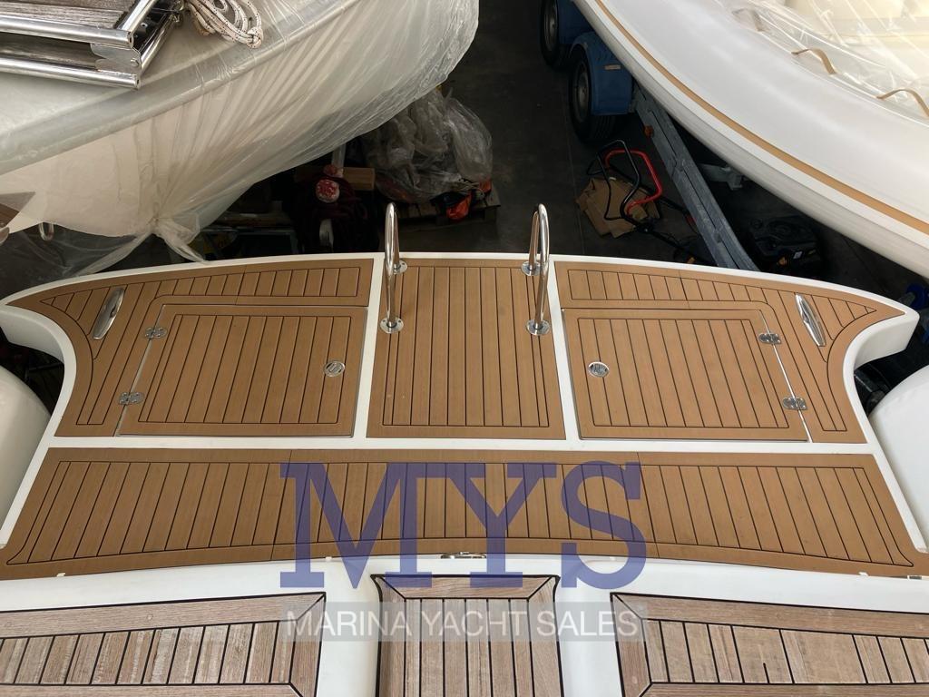 Eau sous pression, 3 Batteries (da 120A cadauno), 4 Douche de cockpit (in bagno, prua, poppa, ozzetto), Phare de poursuite, Lavage de chaine, Spots sous-marins, Plateforme arrière (con Levoteck sintetico ad alta densità 2023), Pompe de cale automatique, Cockpit en teck, Prise de quai, Connexion eau sous pression à quai, Rollbar, Guindeau électrique (+ comando wireless), Echelle de bain.