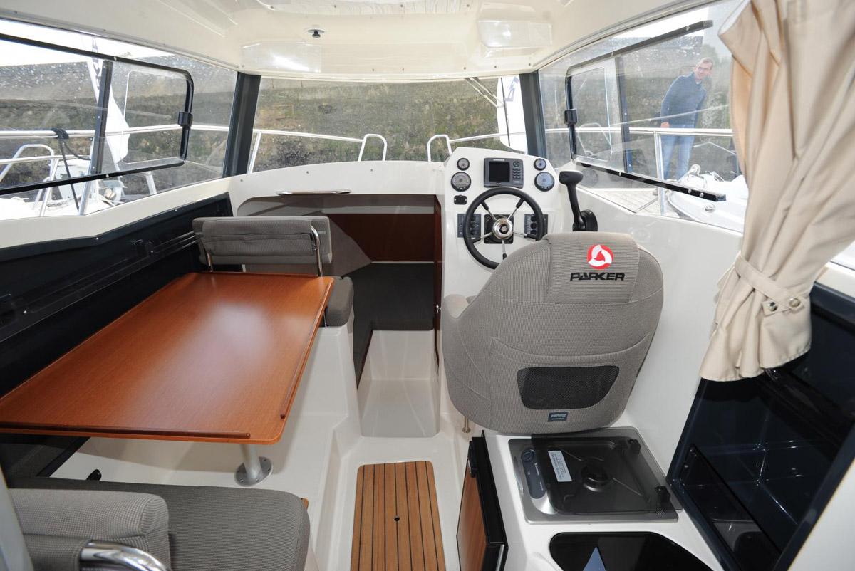 Le Parker 660 Weekend dispose d'un espace cabine plus spacieux que celui du Parker 660 Pilothouse, offrant ainsi une couchette double supplémentaire, permettant à 4 personnes de dormir confortablement à bord. La cuisine, parfaitement aménagée avec un évier, un robinet, et de nombreux rangements, permet d'ajouter des options telles qu'un réfrigérateur et une cuisinière pour des moments conviviaux à bord.