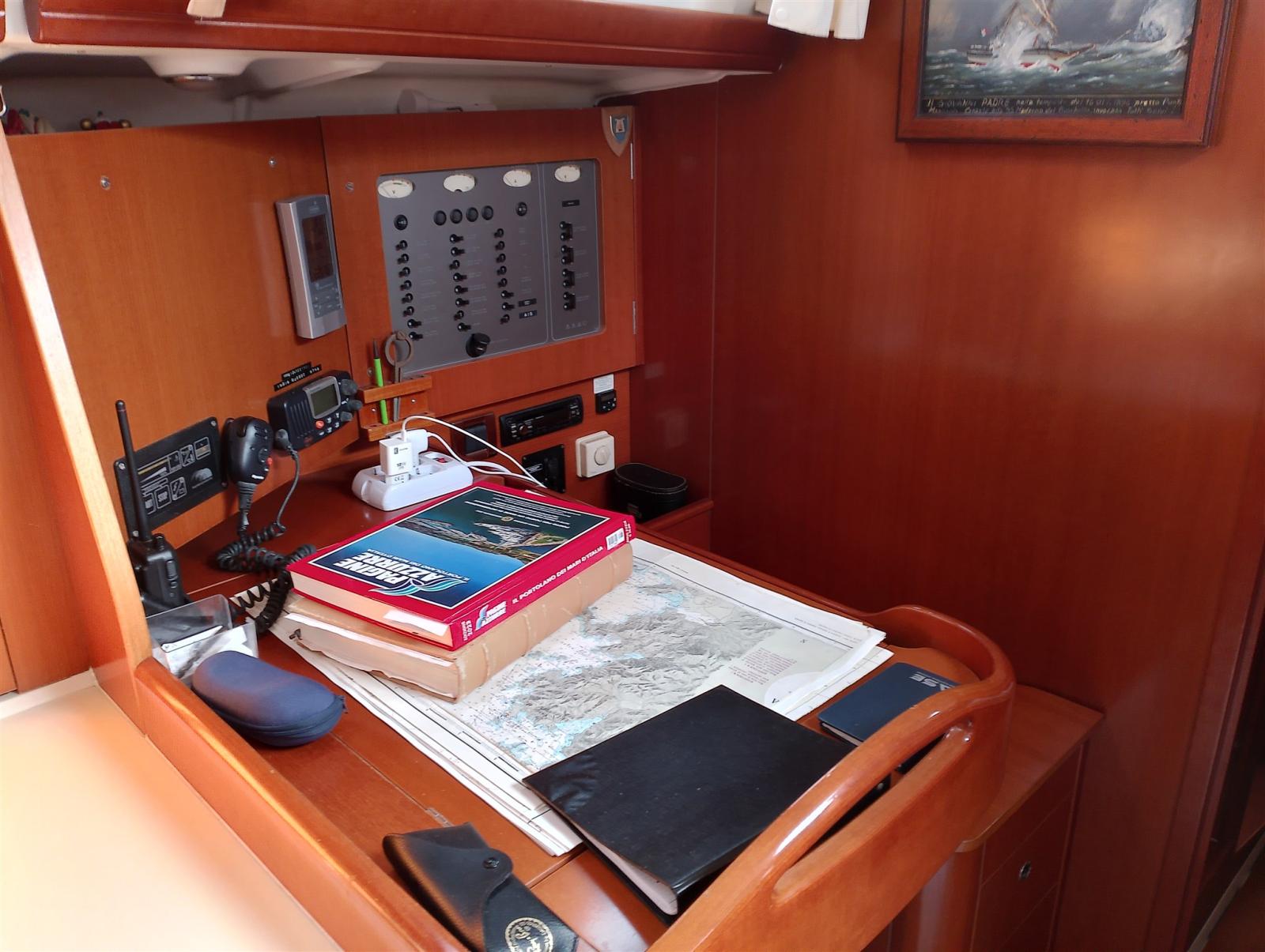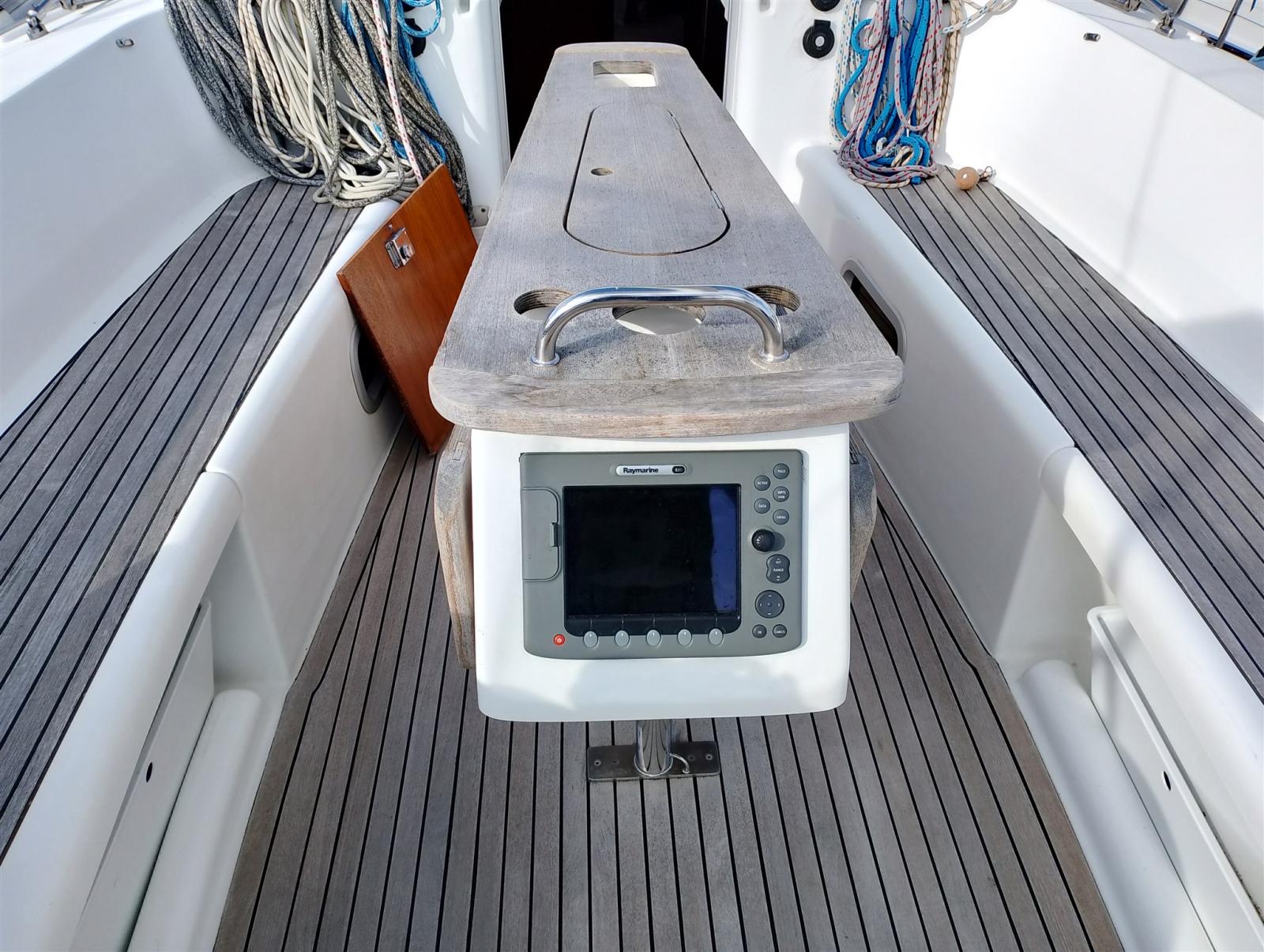 AIS (Attivo), 2 Compas, 2 Compteur de chaîne (a prua e a poppa), Sondeur pêche (Raymarine), Pilote automatique (Raymarine), Lecteur de cartes (Raymarine), Plotter GPS (Raymarine), Radio VHF (Raymarine), Anémomètre/Girouette (Raymarine).