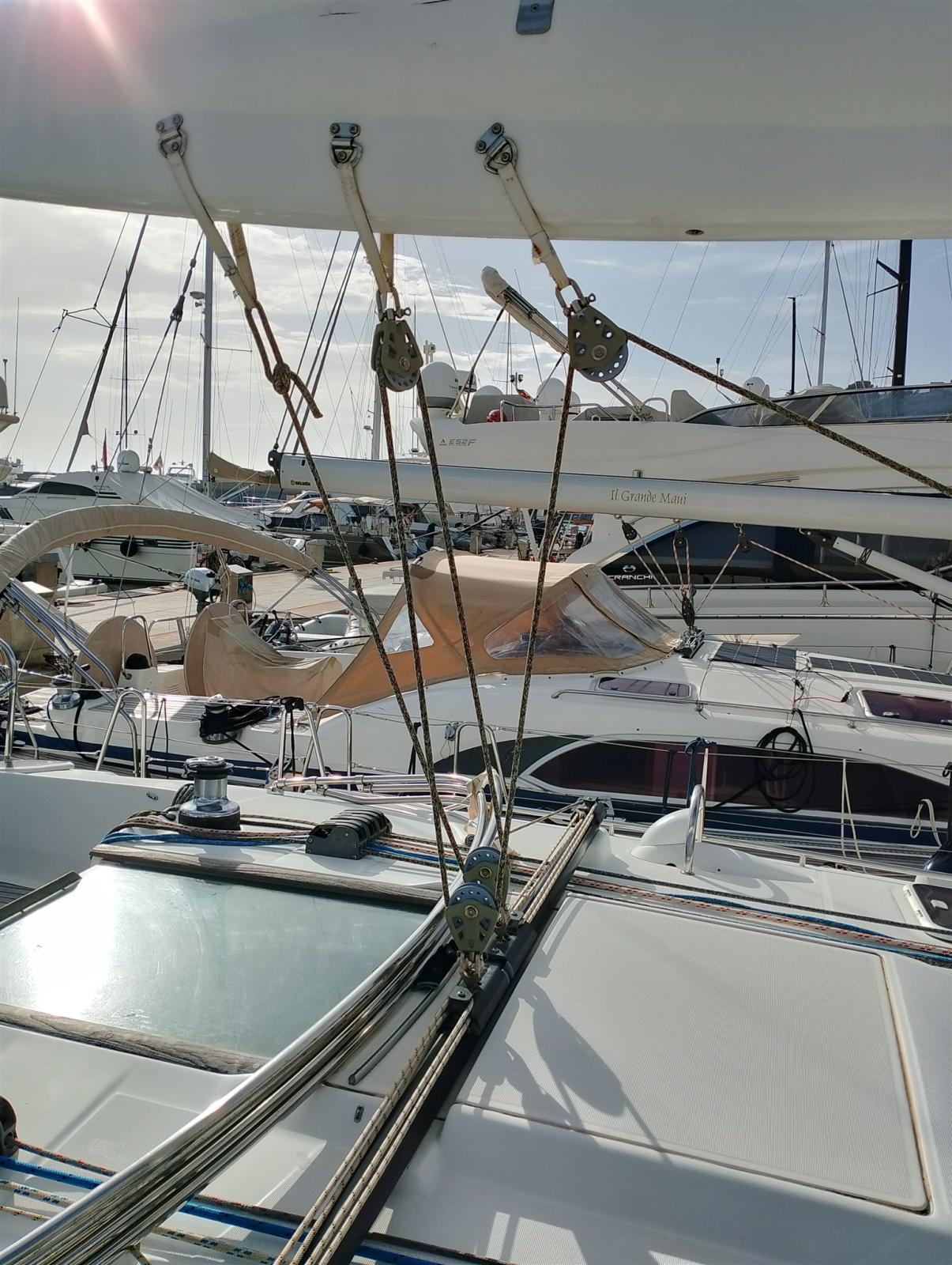 Grand-voile sur enrouleur sur bôme, Enrouleur de Génois 2022. Passe-coques et prises d’air remplacés en 2022/23. Carénage annuel comme tous les entretiens. en juin 2025. Bimini 2023