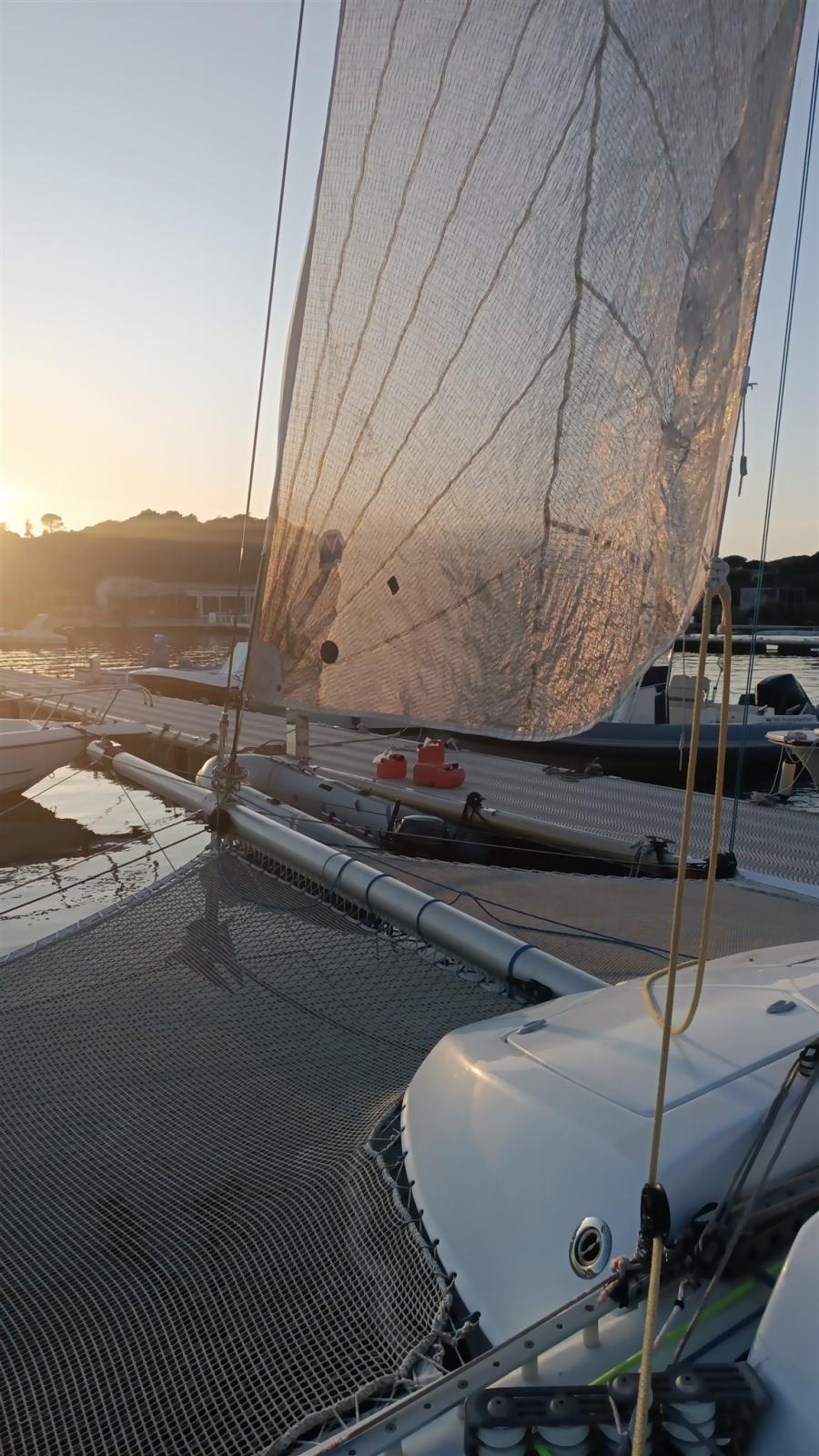 Équipement Gennaker, Enrouleur de foc, Bout-dehors, Chariots à bille de GV, Lazy Bag, barre d'écoute.