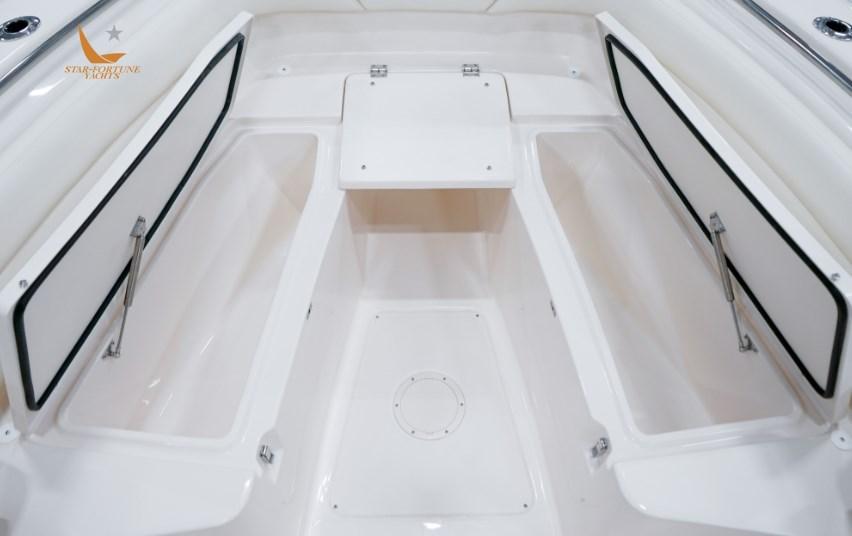 27 pieds, c’est l’un des meilleurs bateaux de pêche en haute mer. Conçu avec une barre élégante incorporant quatre porte-cannes, un rangement pour le matériel et un réservoir d’eau courante de 42 gallons, ce bateau est prêt pour la pêche. Tous construits sur la coque exceptionnelle SeaV² ® unique de Grady, le 271 assure la navigation la plus sèche de tous les bateaux du marché. Rejoignez les zones de pêche dans le confort et le style, puis profitez d’une croisière au coucher du soleil sur ce bateau familial à console centrale.