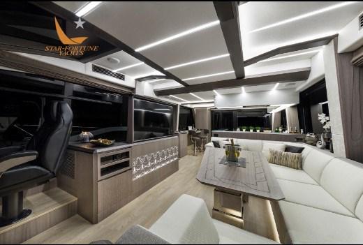 Alarme intrusion, Air conditionné (opzionale), Ballon d'eau chaude, Coffre-fort, Air Conditionné (opzionale), Contrôleur domotique, Gradateur de lumière, Dessalinisateur (opzionale), Cuve à eaux noires, Prises interieures 12v, Prises interieures 220v, Chauffage (opzionale), Réservoir d'eau noire, Caméra infrarouge (opzionale (Fleer)), Toilettes électriques.