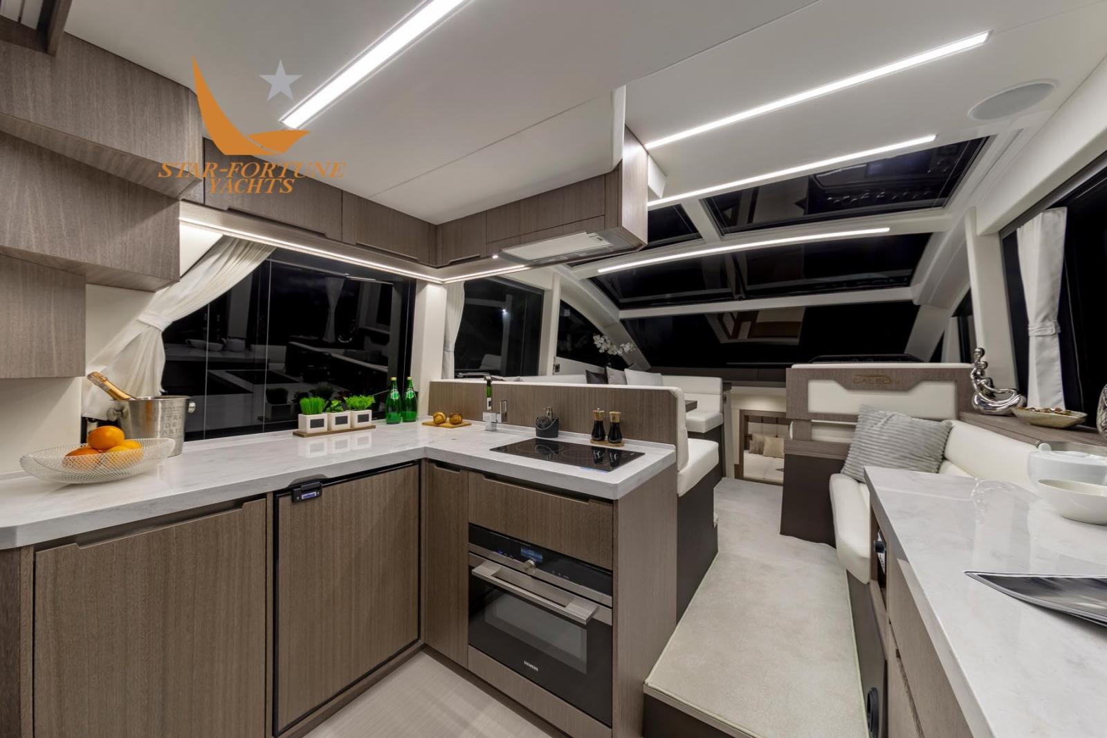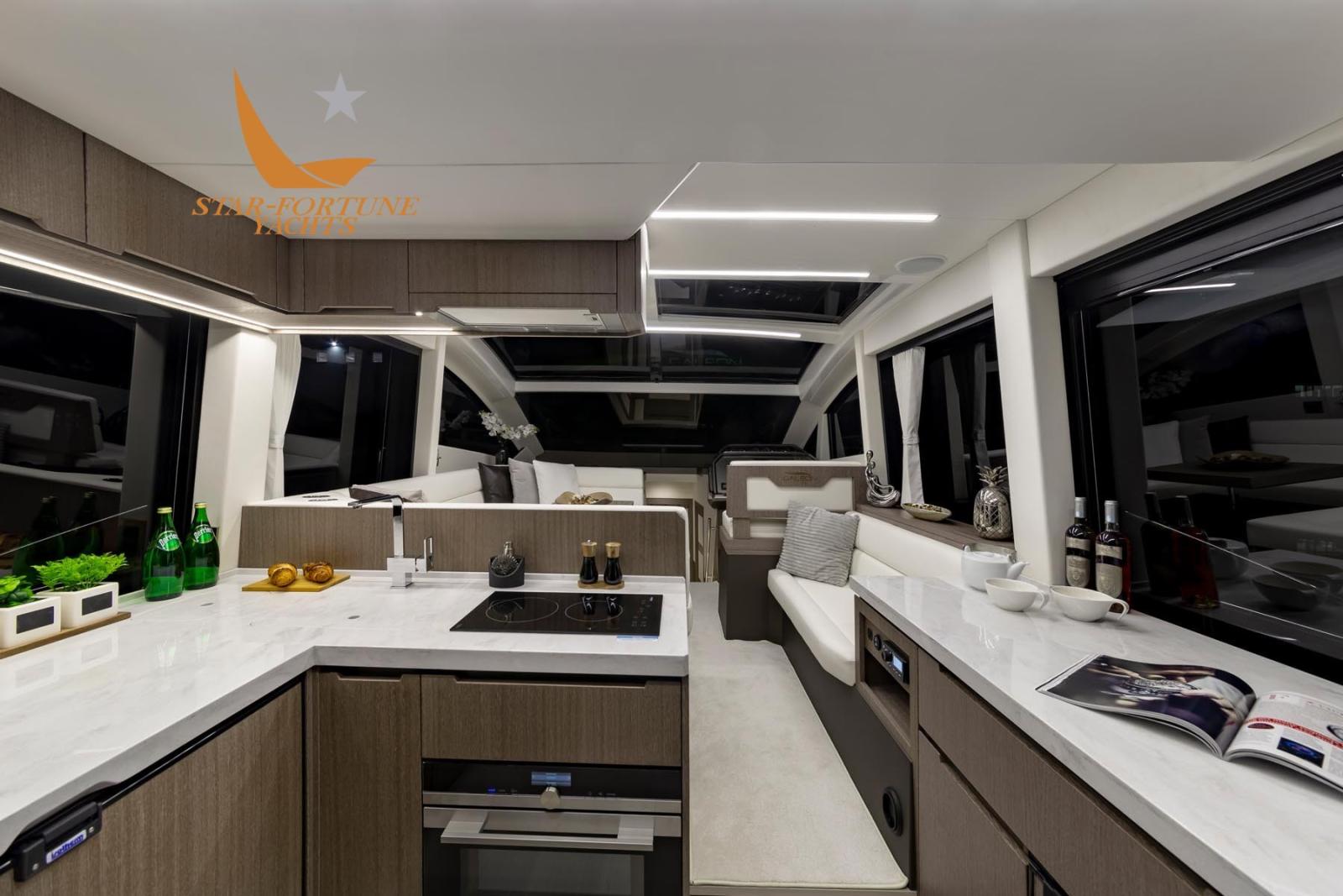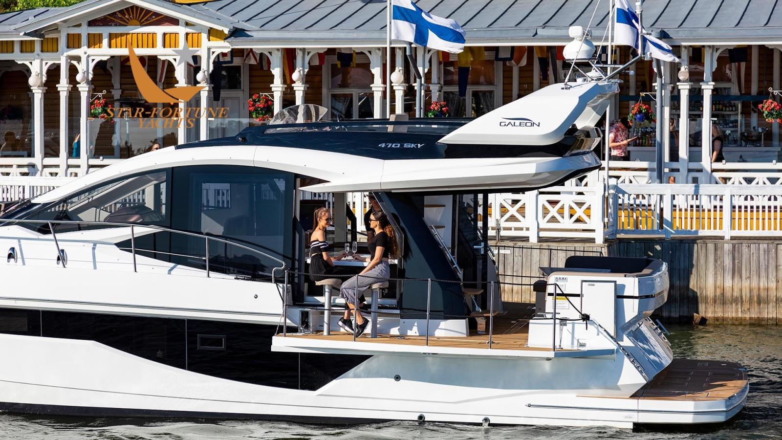 Le 470 SKYDECK rejoint la gamme en apportant encore plus d’innovation à la gamme Galeon de troisième génération. Le pont principal est équipé d’une cuisine, d’un coin repas et de nombreux espaces de rangement. Le mode plage en option vous permet de vous abaisser de chaque côté et de créer une grande zone près du cockpit, parfaite pour divertir les invités. Trois solutions de cockpit différentes sont disponibles, y compris l’option populaire de siège rotatif. La zone de proue peut être équipée d’un canapé automatique pour encore plus de confort à l’extérieur. Le mode plage en option vous permet de vous abaisser de chaque côté et de créer une grande zone près du cockpit, parfaite pour divertir les invités.