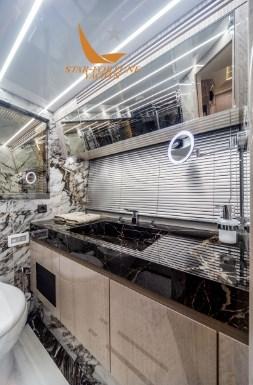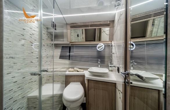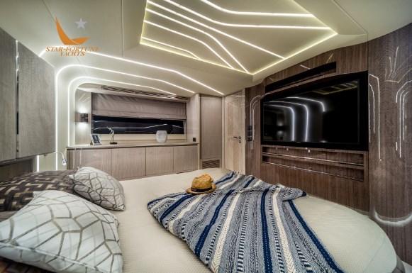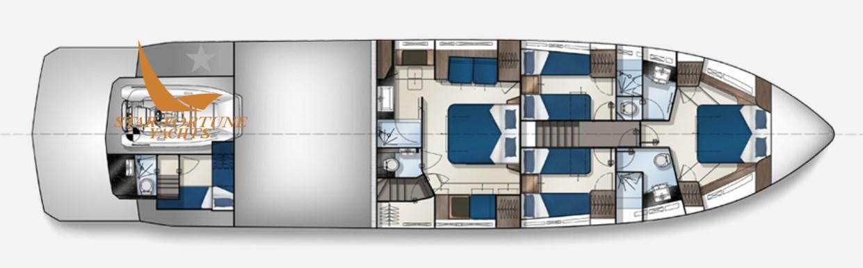 Montez à bord du 700 pour découvrir la meilleure sélection de matériaux et d’options de décoration intérieure sur mesure, méticuleusement finie par le meilleur et le plus expérimenté des artisans Galeon. L’aménagement du pont principal comprend deux zones distinctes, les zones de détente et de restauration étant déplacées à l’avant. Les clients apprécieront l’intimité des doubles escaliers qui donnent accès à deux zones de couchage séparées à l’étage inférieur. Quatre cabines et trois salles de bains vous attendent, toutes avec une grande hauteur sous plafond et beaucoup d’espace de rangement.