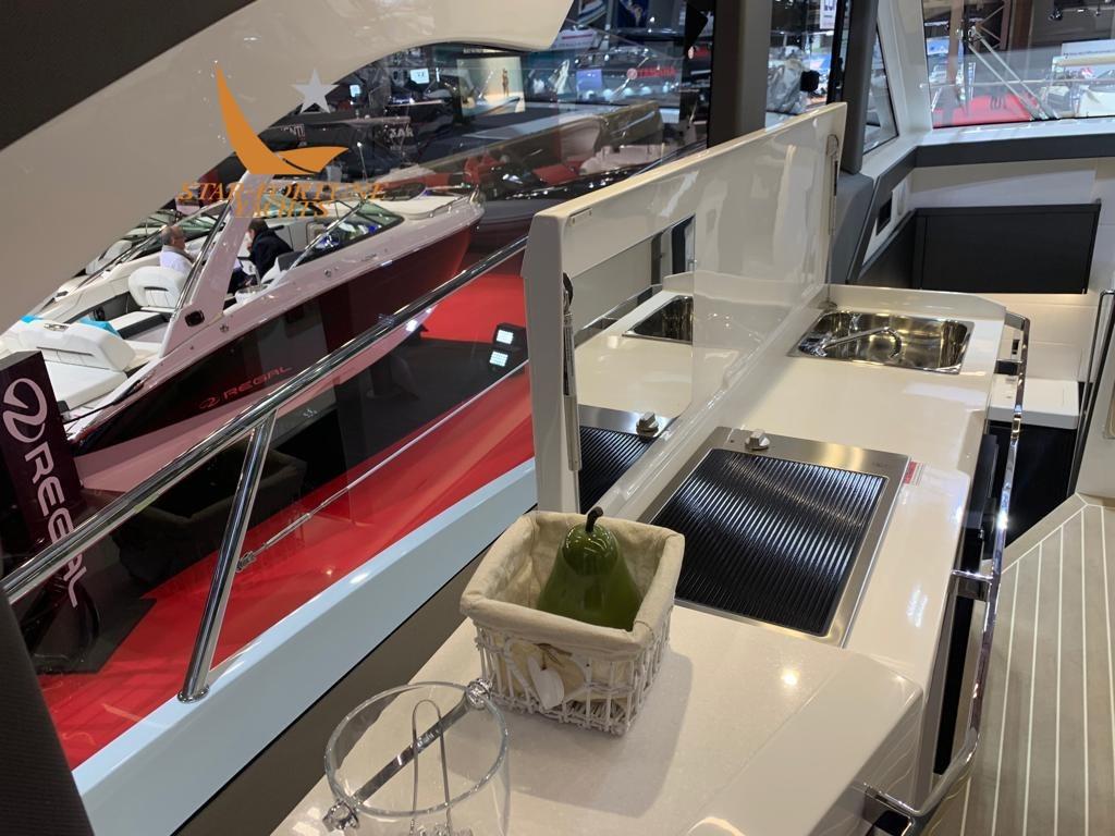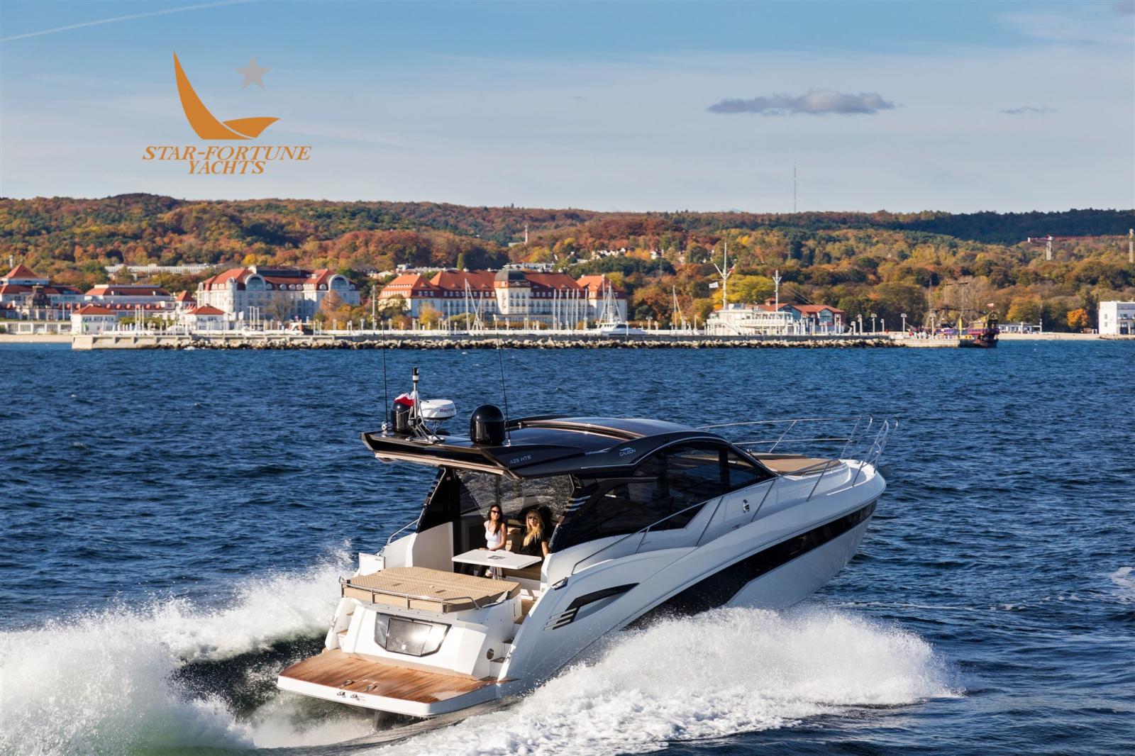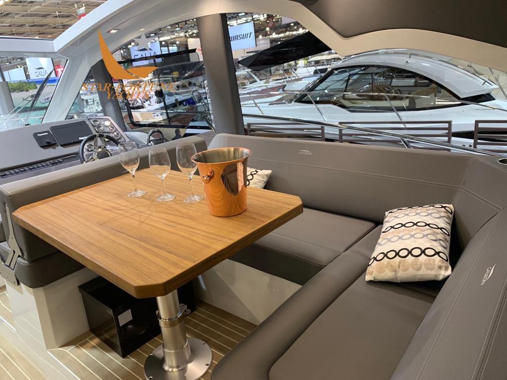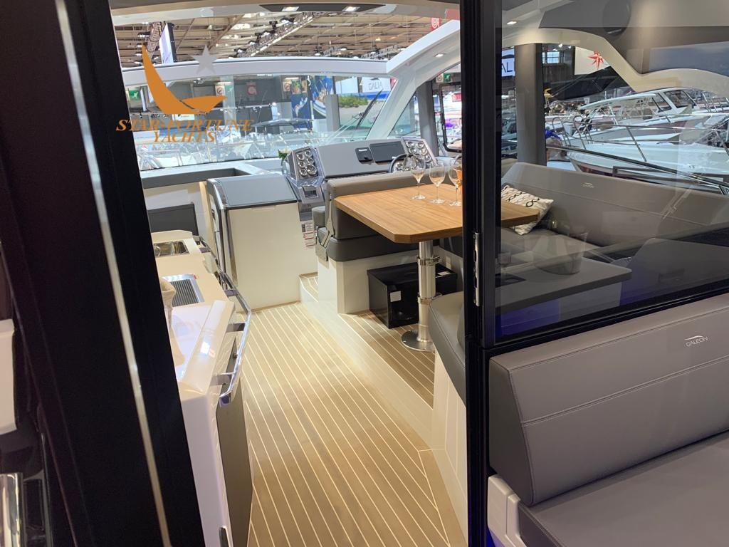 Le 425 HTS suit le concept de croiseur express du Galleon 485 où le pont principal est une zone sèche protégée du bruit et des intempéries par une combinaison de portes et de fenêtres en verre. Cela lui permet également de s’adapter au chauffage et à la climatisation, une caractéristique bienvenue dans la plupart des climats.