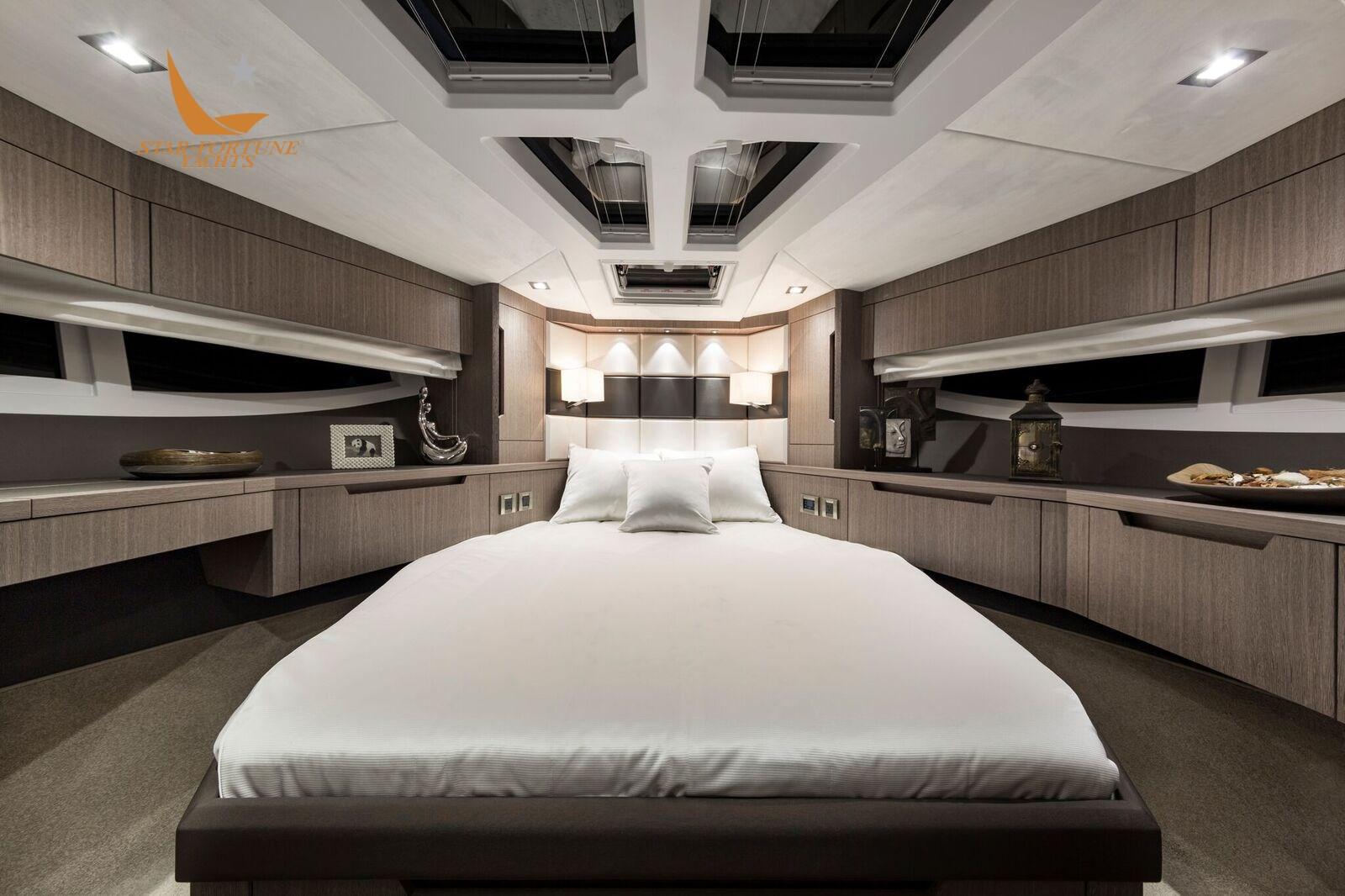 Dans la version standard, les intérieurs sont en acajou semi-poli mais vous pouvez choisir d’autres variantes. Nombreux accessoires inclus dans la version standard : canapé arrière, canapé avec bain de soleil à l’avant - Plate-forme de bain en teck - Direction hydraulique - Réservoir d’eaux noires - Porte d’entrée coulissante - Fenêtre panoramique au-dessus du côté conducteur avec ouverture électrique - Chaudière - Guindeau avec chaîne - Grill et micro-ondes - Réfrigérateur dans la cuisine - Douche dans la salle de bain - Stores et rideaux vénitiens dans les cabines - Parquet dans la cuisine et le cockpit - Table sur le fly -