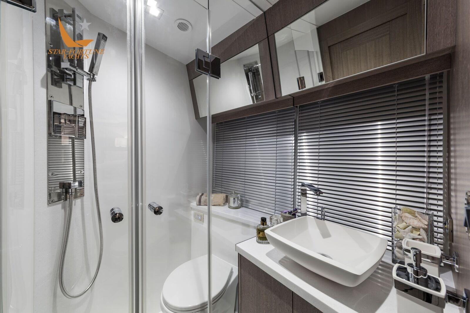 Alarme moteur, Alarme de pompe de cale, Eau sous pression, Flaps électriques, Hard top, Extincteur(s) fixe(s), Plateforme arrière, Pompe de cale automatique, Porte latérale, Porte latérale, Cockpit en teck, Prise de quai, Guindeau électrique, Echelle de bain.