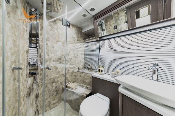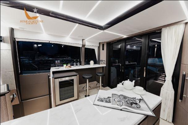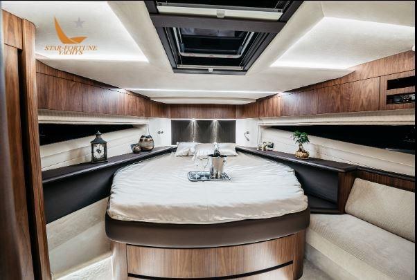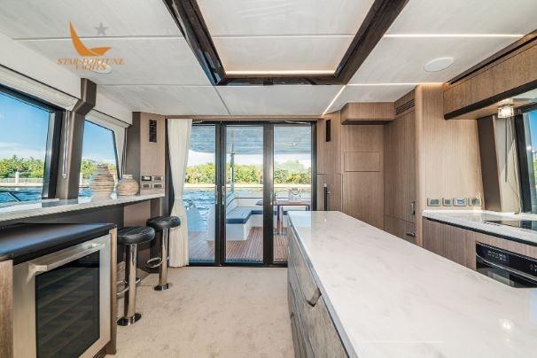 À bord du 680, les passagers trouveront un volume incroyable, un intérieur lumineux et accueillant et une finition luxueuse hautement personnalisable. Un grand salon avec un espace de divertissement dédié et deux escaliers séparés menant au niveau inférieur à quatre cabines d’invités qui ont été conçues pour assurer confort et intimité.