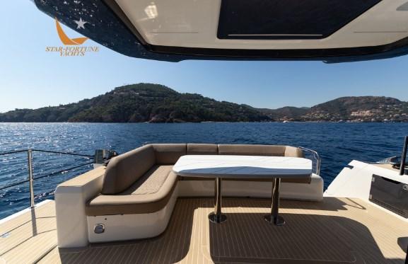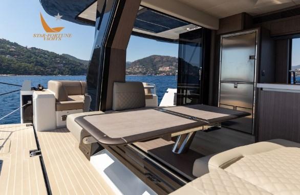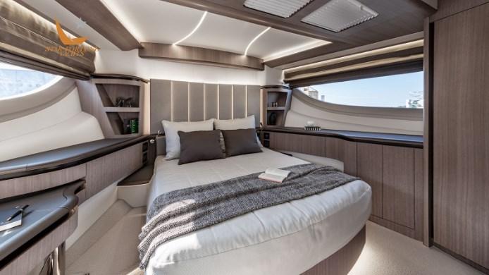 À l’intérieur, les intérieurs exclusifs et entièrement personnalisables sont un mélange de tendances de design moderne et d’accessoires de luxe fabriqués à la main avec une grande variété de boiseries, de tissus et de détails. Le pont principal offre une cuisine généreusement aménagée avec des divertissements et une salle à manger déplacés à l’avant. La 560 FLY vise à maintenir l’équilibre fragile entre praticité et volume intérieur, en repoussant les limites du design et de la finition haut de gamme.