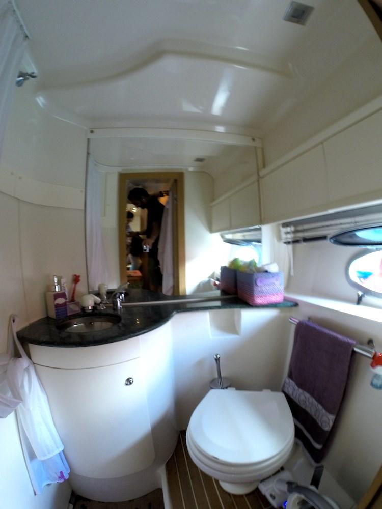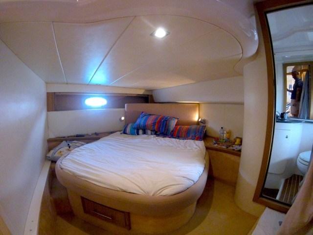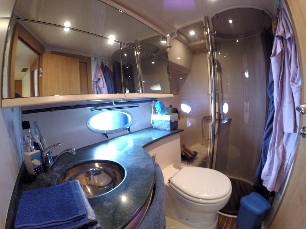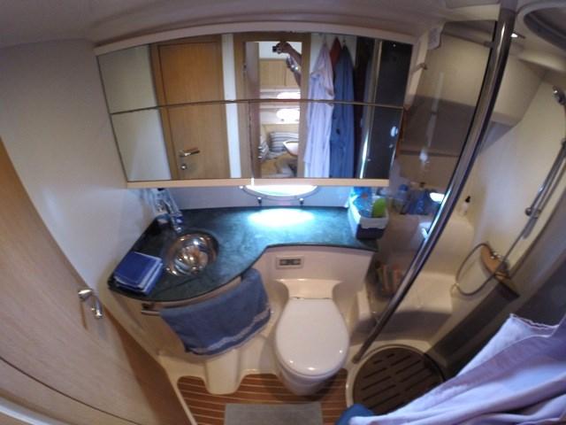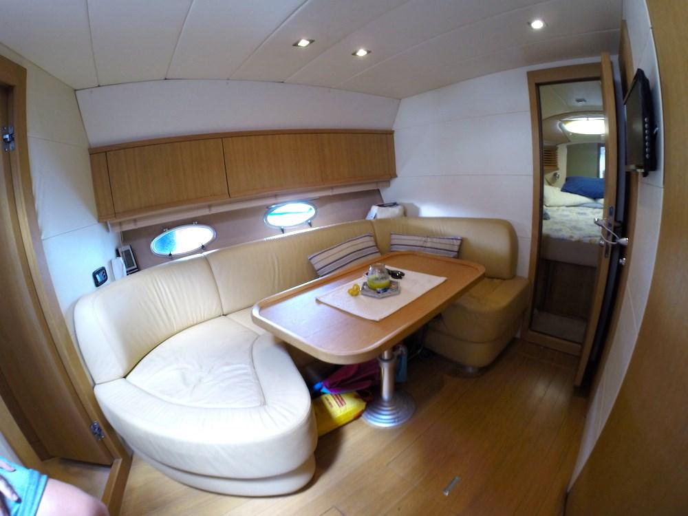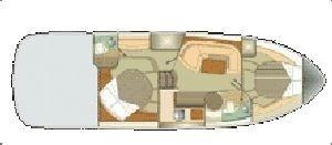 Sessa C 42 HT caractérisée par 2 cabines doubles, dont l’une est une double poutre au milieu, toutes deux desservies par une salle de bains privative !!