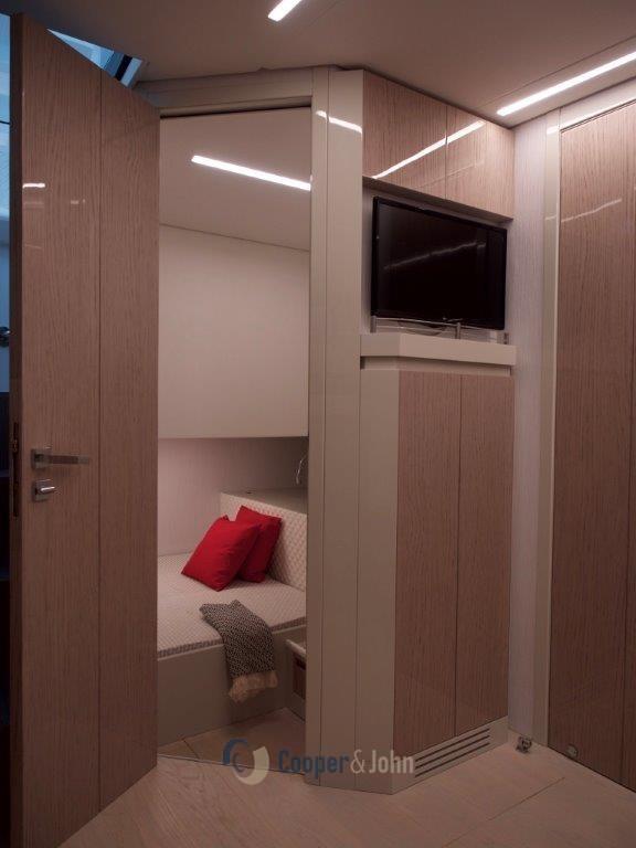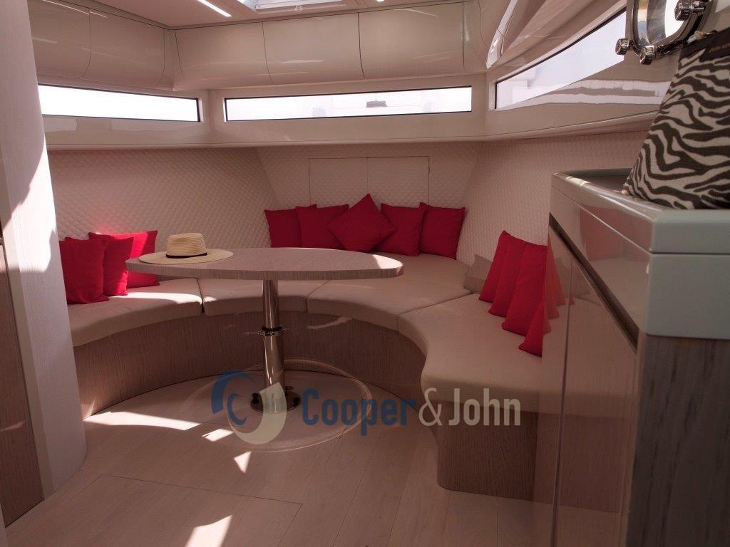 Ancre (20 kg mt 100 catena 8), Eau sous pression, 5 Batteries, Passavant en teck, Douche de cockpit, Flaps hydrauliques, Garage à annexe, Hard top, Éclairage de courtoisie, 2 Porte latérale, Prise de quai, Guindeau électrique, Echelle de bain.