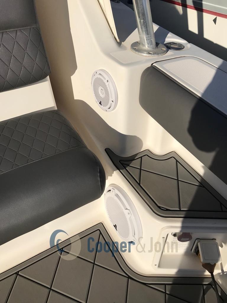 Eau sous pression, Douche de cockpit, Flaps hydrauliques, Passerelle, Plateforme arrière, Prise de quai, Guindeau électrique, Echelle de bain.