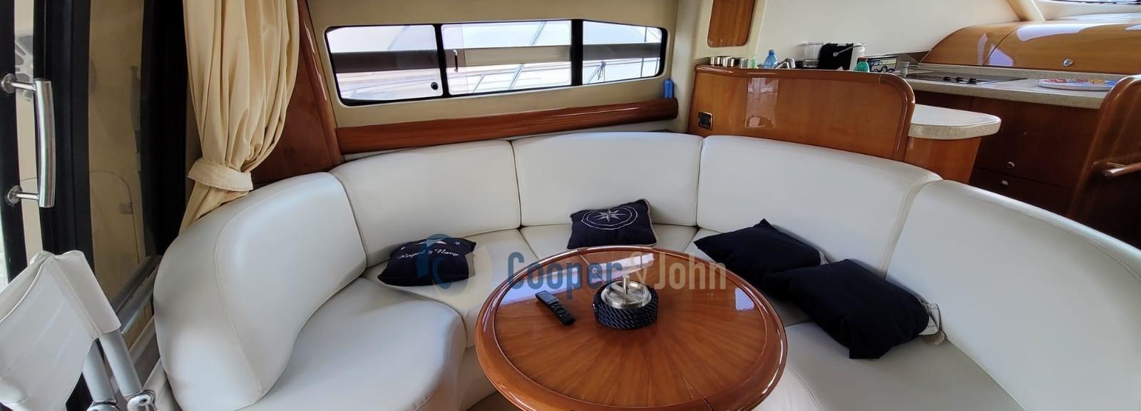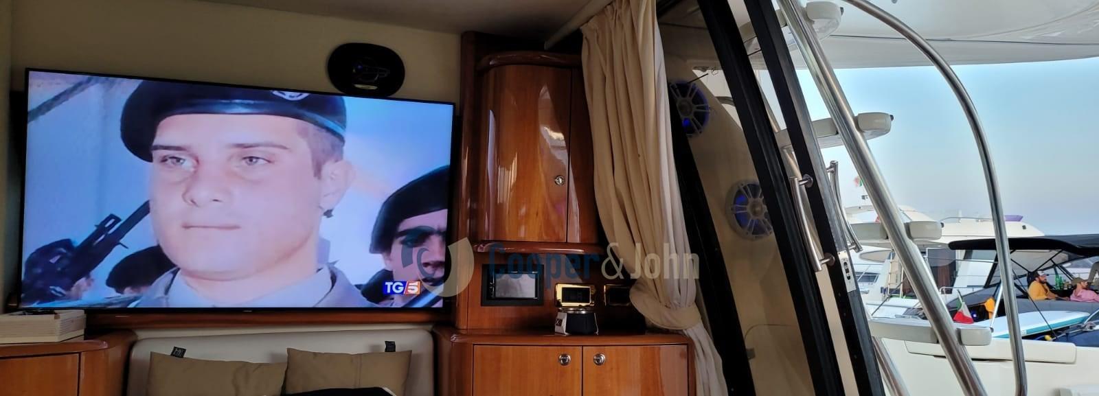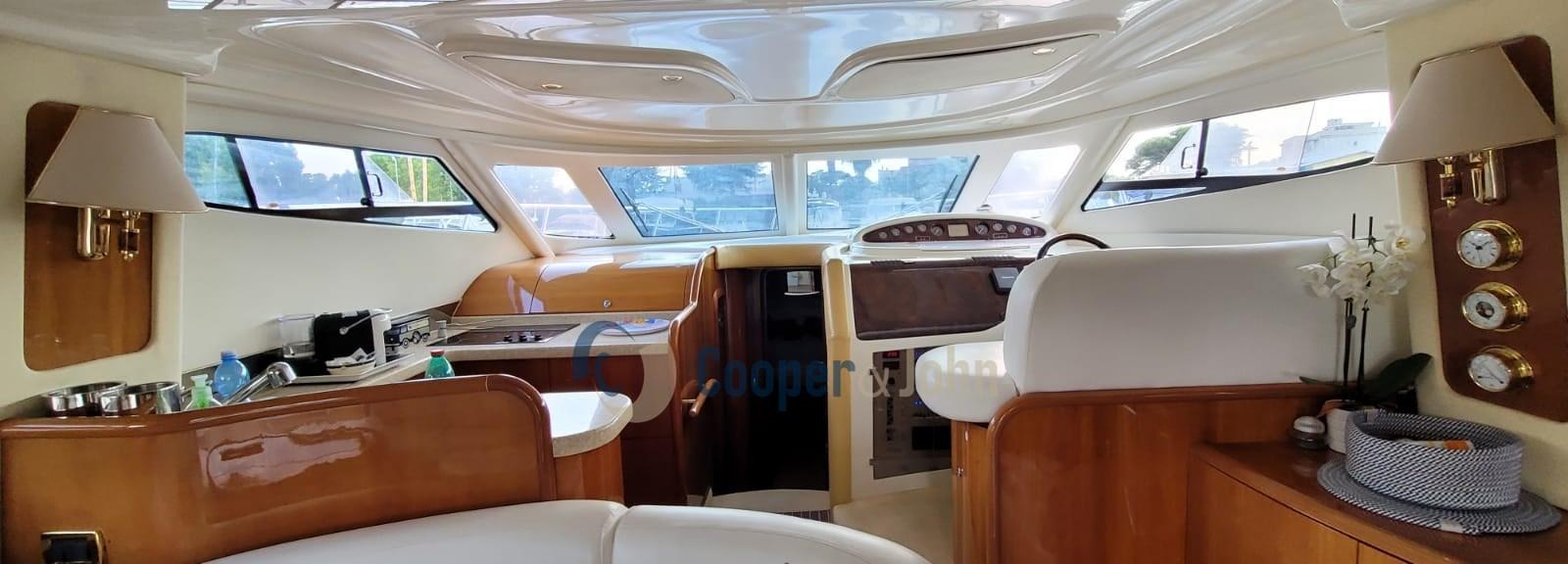 Eau sous pression, Douche de cockpit, Flaps hydrauliques, Passerelle (idraulica), Plateforme arrière, Pompe de cale automatique, Prise de quai, Onduleur, Répétiteur électronique (fly), Rollbar, Guindeau électrique, Echelle de bain, table de cockpit.