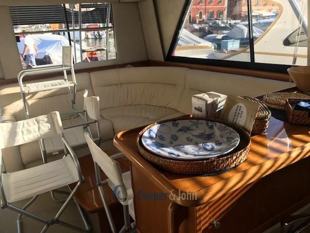Eau sous pression, 6 Batteries, Douche de cockpit, Flaps hydrauliques, Hard top, Passerelle (idraulica), Cockpit en teck, Prise de quai, Guindeau électrique, Echelle de bain, Annexe (+ 3,5 hp).