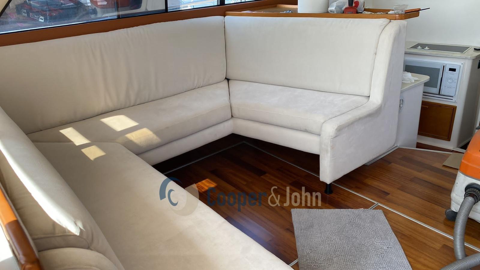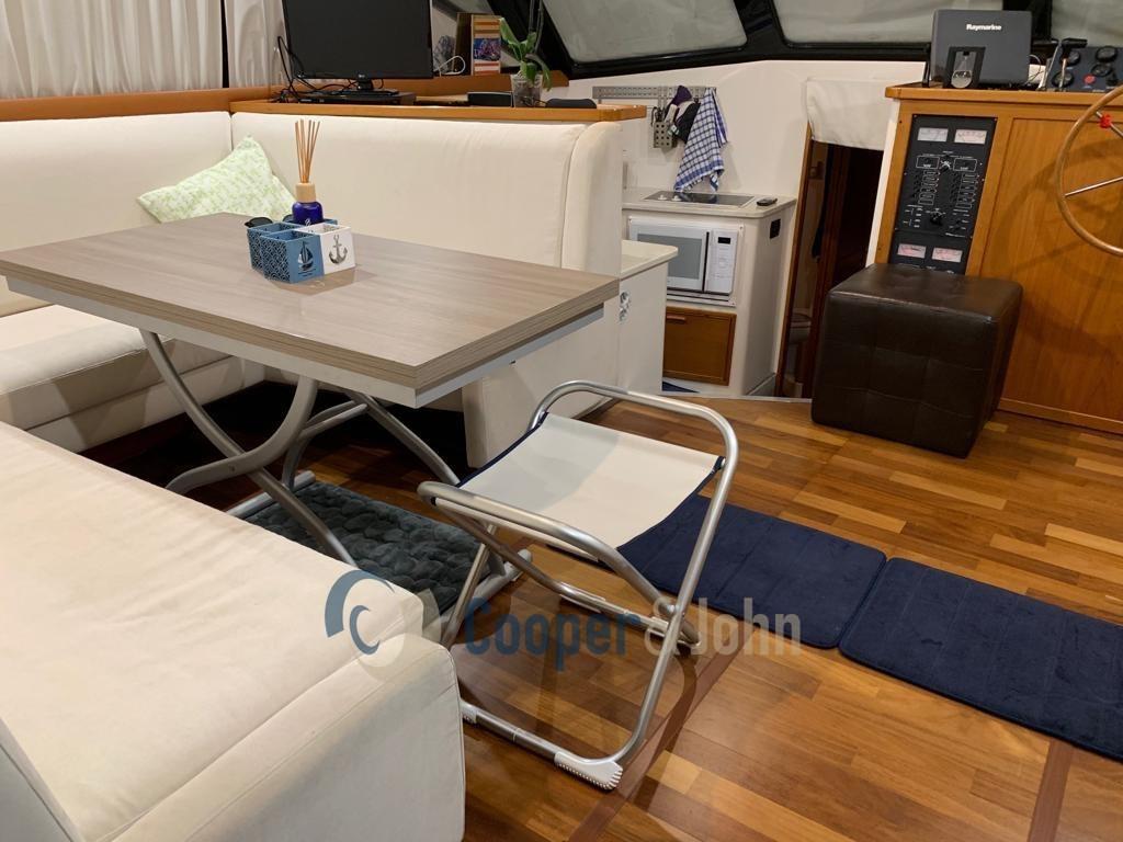 TRAVAUX RÉALISÉS en février 2022 - révision de la turbine - nouveaux collecteurs d’échappement en aciers inoxydables - remplacement du chargeur de batterie - nouvelles batteries - nouveau système de climatisation (csldo et froid) - deux instruments Raymarine C12 + chirp mdulo et transducteur B 265 Ihda 1 KW - les sols sont en Iroko Marino -