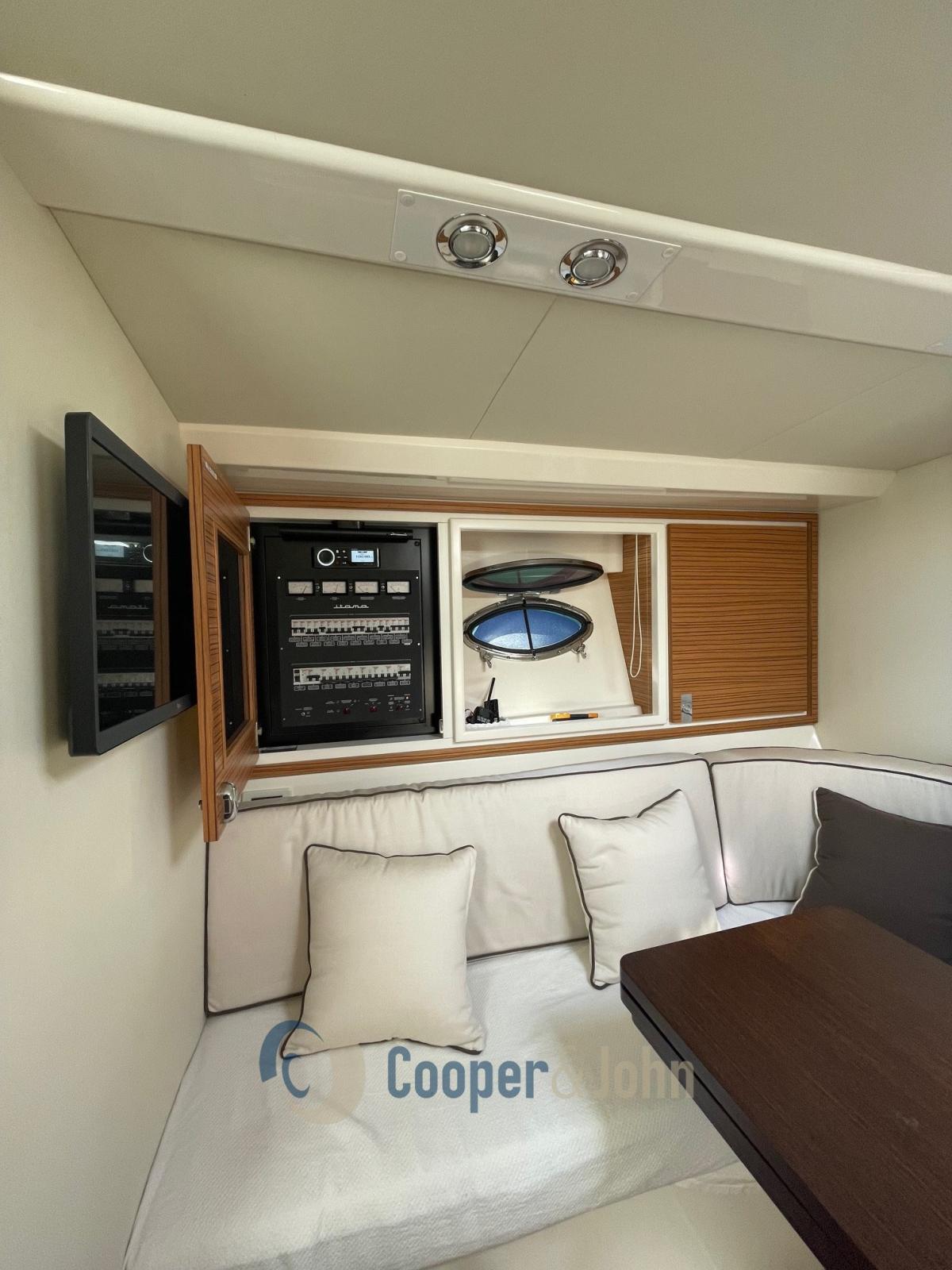 Alarme gaz, Alarme moteur, Eau sous pression, 4 Batteries (+1), Douche de cockpit, Flaps hydrauliques, Indicateurs de flaps, Passerelle (idraulica), Plateforme arrière (teak), Pompe de cale manuelle, Prise de quai, Guindeau électrique, Annexe, Corne.