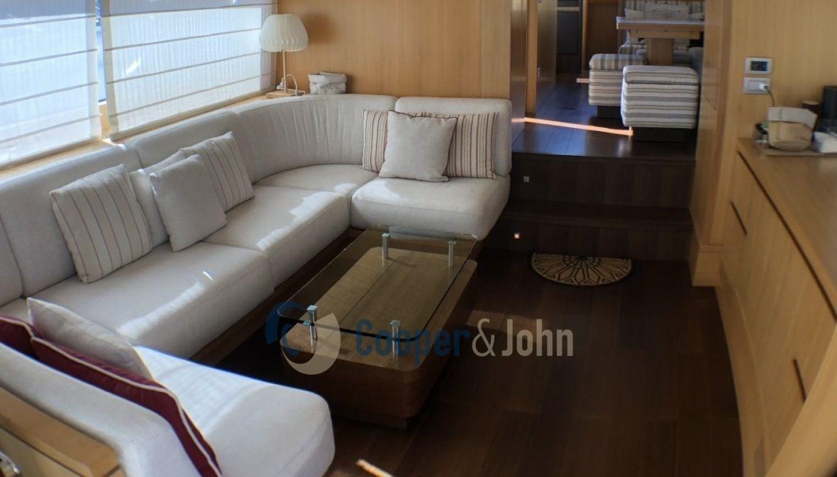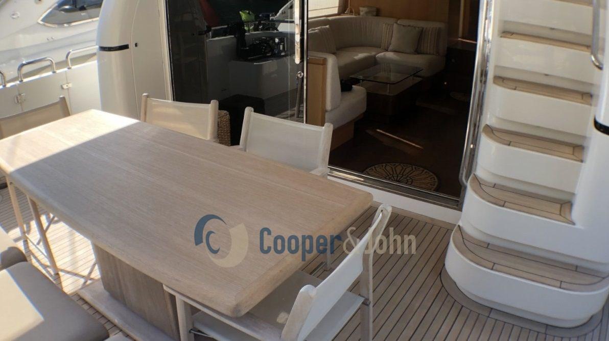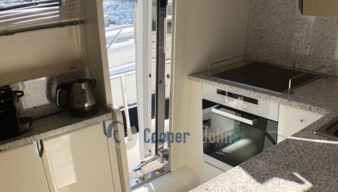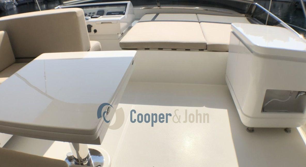 Alarme gaz, Alarme moteur, Alarme de pompe de cale, Eau sous pression, Douche de cockpit, 2 Flaps hydrauliques, Passerelle, Porte latérale, Prise de quai, Rollbar, Guindeau électrique, Echelle de bain, table de cockpit, Annexe (3,4 mt - Yamaha 30 hp).