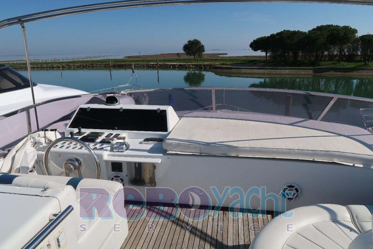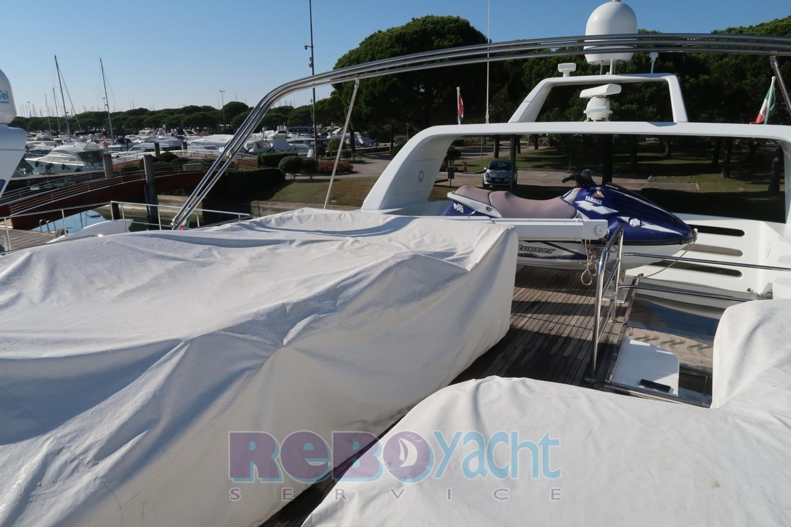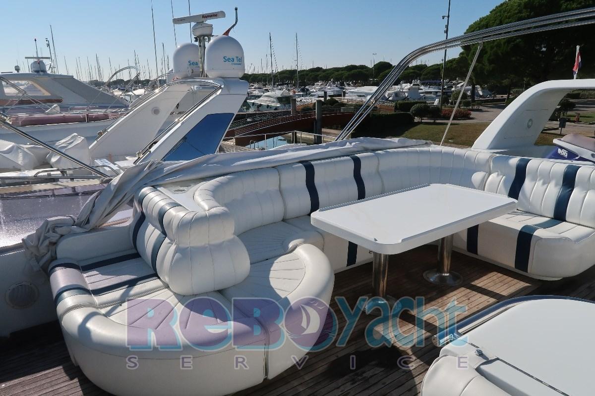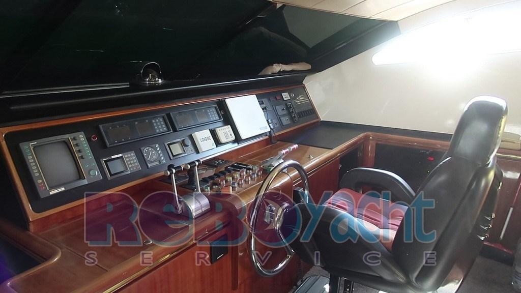 Eau sous pression, Douche de cockpit, Phare de poursuite, Flaps hydrauliques, Bossoirs pour annexe (plancetta), Grue de flybridge, Indicateurs de flaps, Passerelle (idraulica), Plateforme arrière (teak), Cockpit en teck, table de cockpit, 2 Winch électrique arrière.