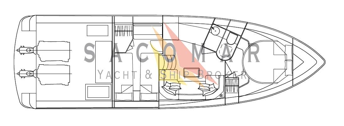 4 Batteries, Garage à annexe, Passerelle, Cockpit en teck, Guindeau électrique.