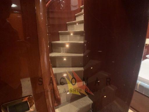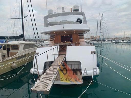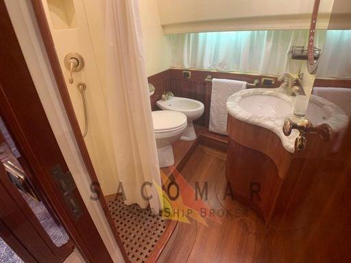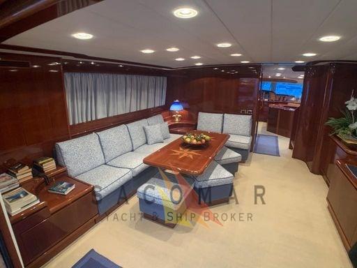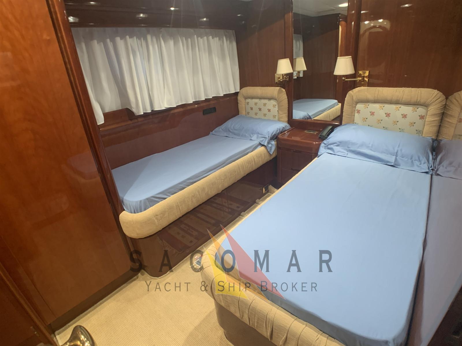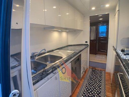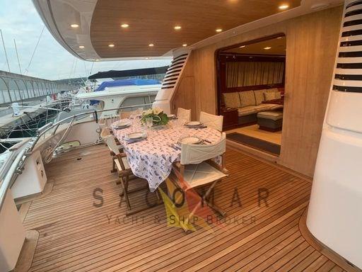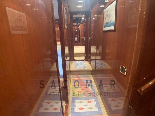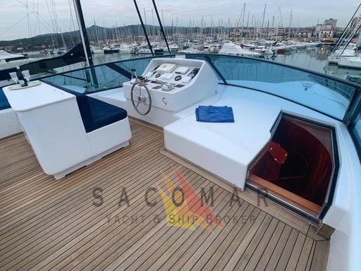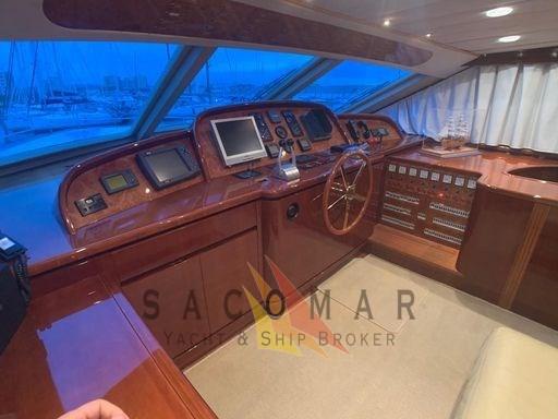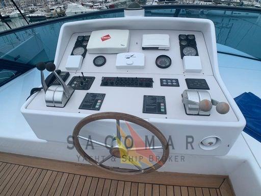 Alarme moteur, Alarme de pompe de cale, Eau sous pression, Passavant en teck, Douche de cockpit, Double barre à roue, Flaps hydrauliques, Grue de flybridge, Extincteur(s) fixe(s), Éclairage de courtoisie, Passerelle (idraulica), Plateforme arrière, Pompe de cale automatique, Porte latérale, 2 Porte latérale, Cockpit en teck, Prise de quai, Connexion eau sous pression à quai, Répétiteur électronique, Rollbar, Guindeau électrique, Echelle de bain, table de cockpit, Corne, 2 Winch électrique arrière.