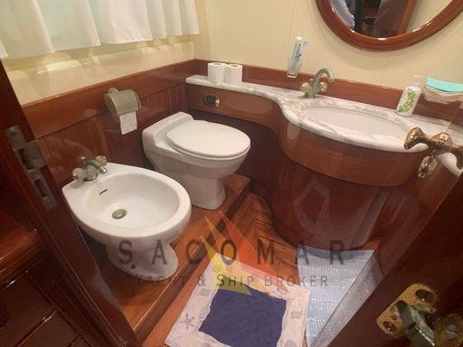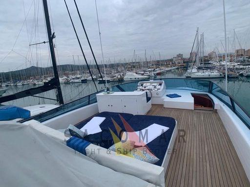 Entretien moteur + service générateur, nettoyage de l’échangeur de chaleur, nouvelles batteries moteur, rasage et recaoutchoutage du teck (cockpit, ponts latéraux, flybridge), révision des pompes de cale et du système de climatisation