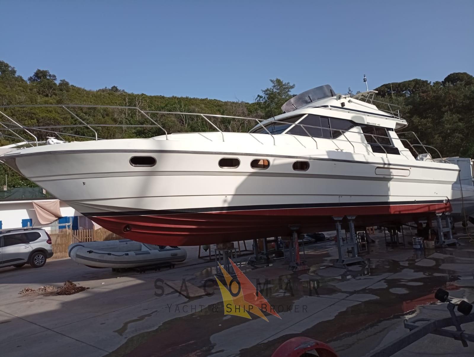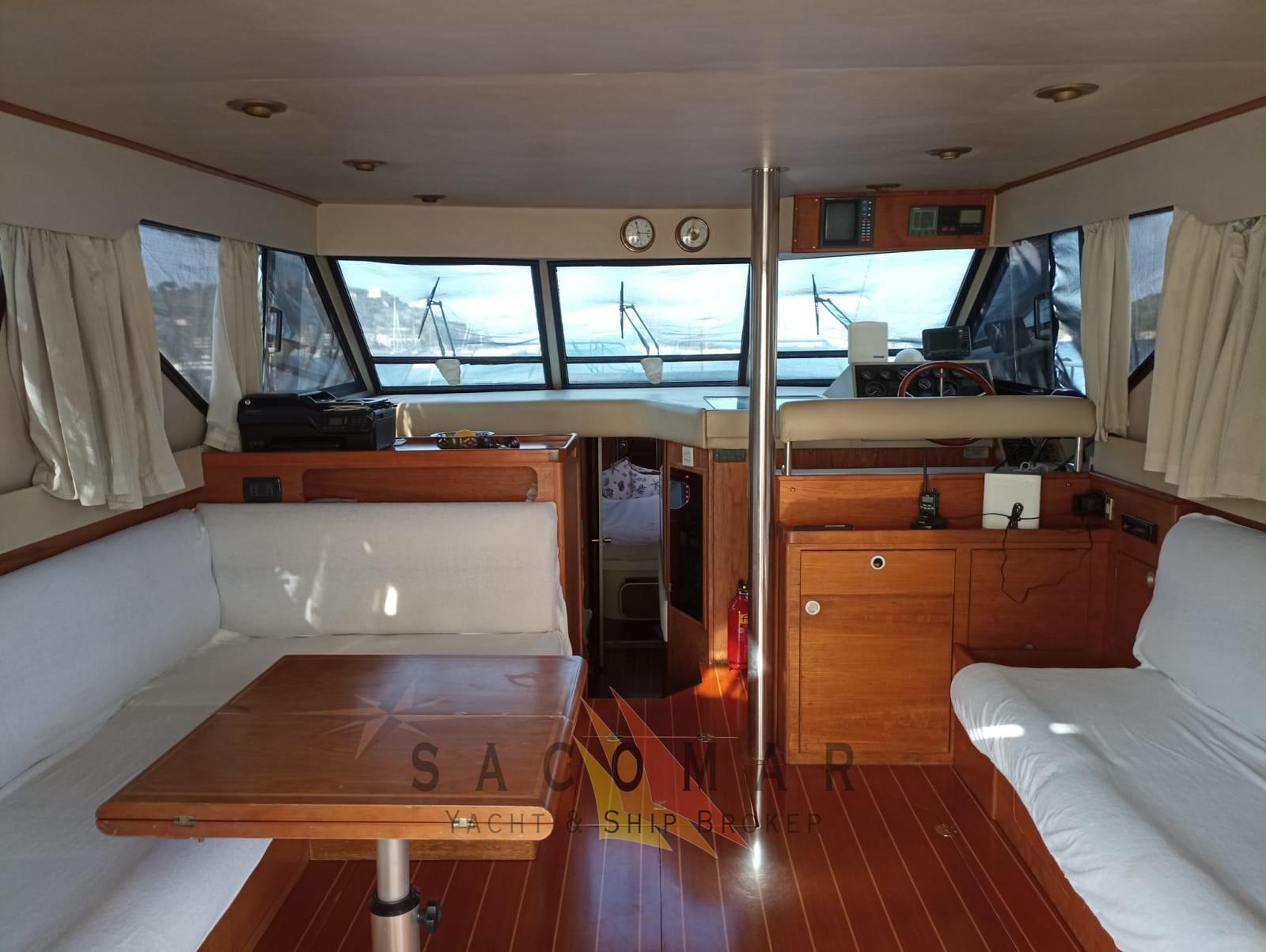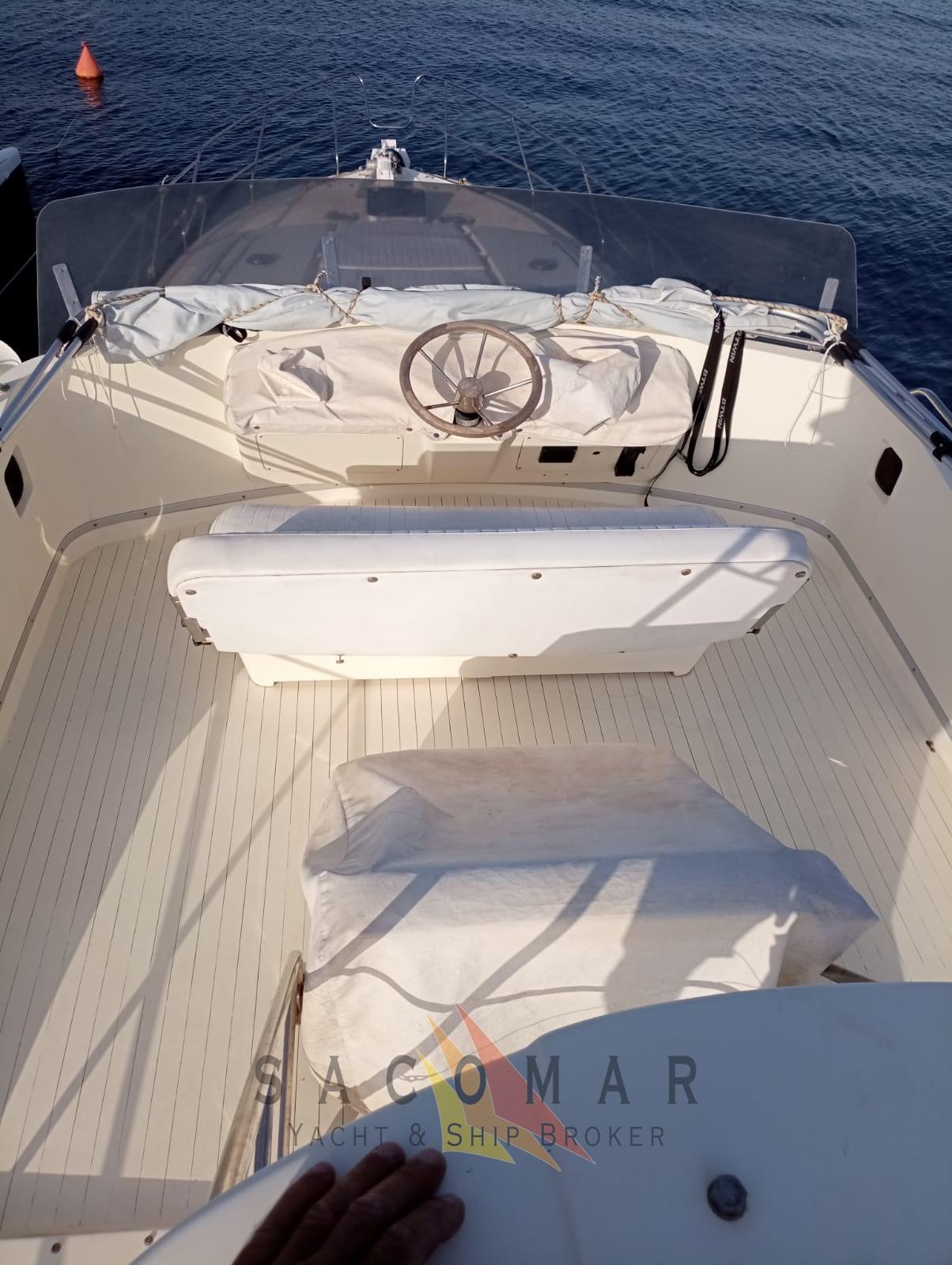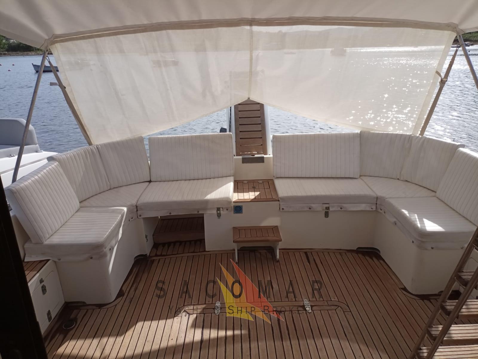 Eau sous pression, Douche de cockpit, Flaps hydrauliques, Bossoirs, Plateforme arrière, Cockpit en teck, Onduleur, Guindeau électrique, Echelle de bain, Annexe (3,5 CON MOTORE 9,9HP).