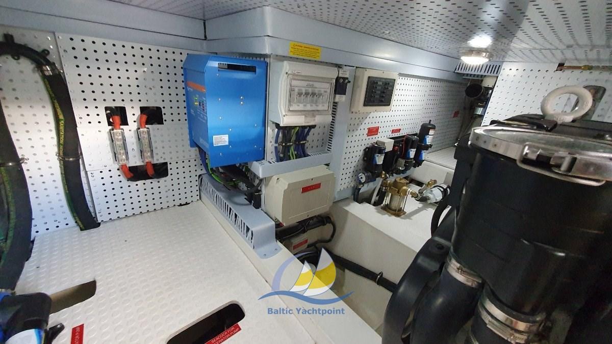 Alarme moteur, Alarme de pompe de cale, 4 Batteries, Douche de cockpit, Éclairage de courtoisie, Plateforme arrière, Cockpit en teck, Prise de quai, Onduleur, Echelle de coupée, Echelle de bain, table de cockpit, Filières avec sortie latèrale, Corne.