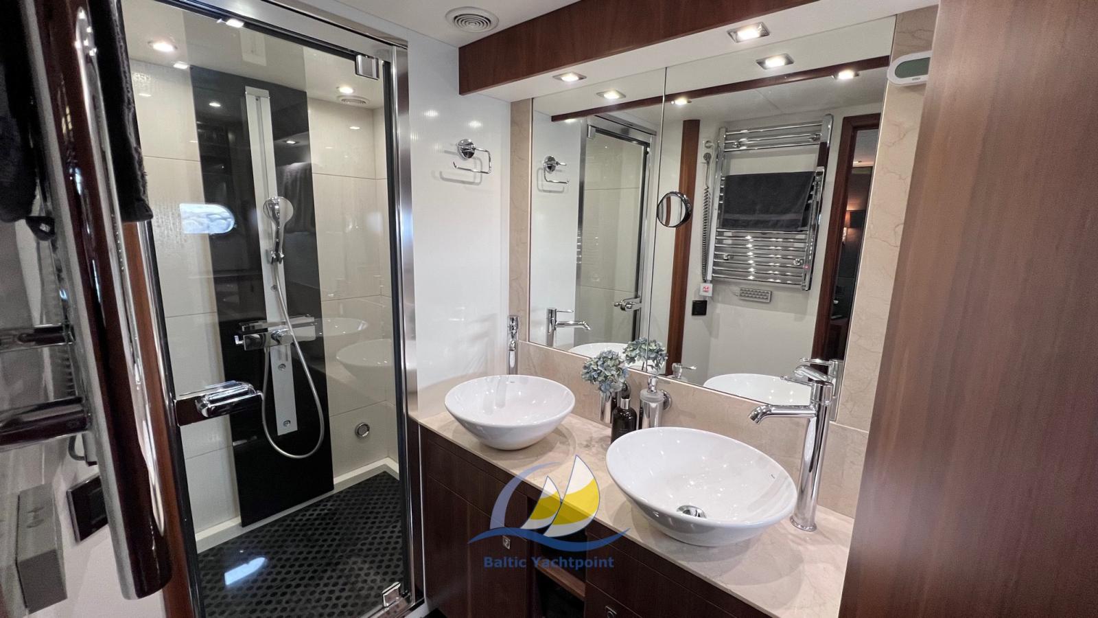 L’hébergement peut accueillir jusqu’à 10 personnes et se compose d’une cabine principale pleine largeur, d’une cabine VIP à l’avant, d’une cabine double à tribord, d’une cabine double à bâbord et d’un équipage ou d’un hébergement supplémentaire à l’arrière. La liste des options pour ce Sunseeker MANHATTAN 73 est longue, y compris la plate-forme de bain abaissable hydrauliquement, le système stabi, le dessalinisateur, la station d’accueil par joystick x 3, les propulseurs hydrauliques d’étrave et de poupe, la navigation raymarine, l’éclairage sous-marin, le Wi-Fi, une gestion de la batterie / alimentation qui permet au yacht d’être autak jusqu’à 2 jours et bien plus encore.