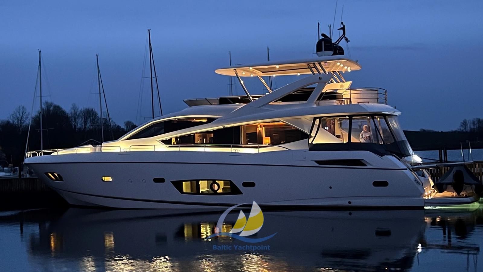 Ce SUNSEEKER MANHATTAN 73 est largement équipé, plus le MANHATTAN 73 a un volume énorme, plus de 22 mètres de long. Ce navire passionnant, propulsé par deux moteurs MAN de 1550 ch, avec env. 800 heures, vous amène à des vitesses allant jusqu’à 30 nœuds et en même temps offre une excellente aptitude longue distance à environ 10 nœuds et le système Stabi installé au chantier naval. La très haute qualité est évidente dans tout l’intérieur avec les surfaces en bois en satin de noyer, les nouveaux meubles rembourrés luxueux et le système de divertissement à la pointe de la technologie.