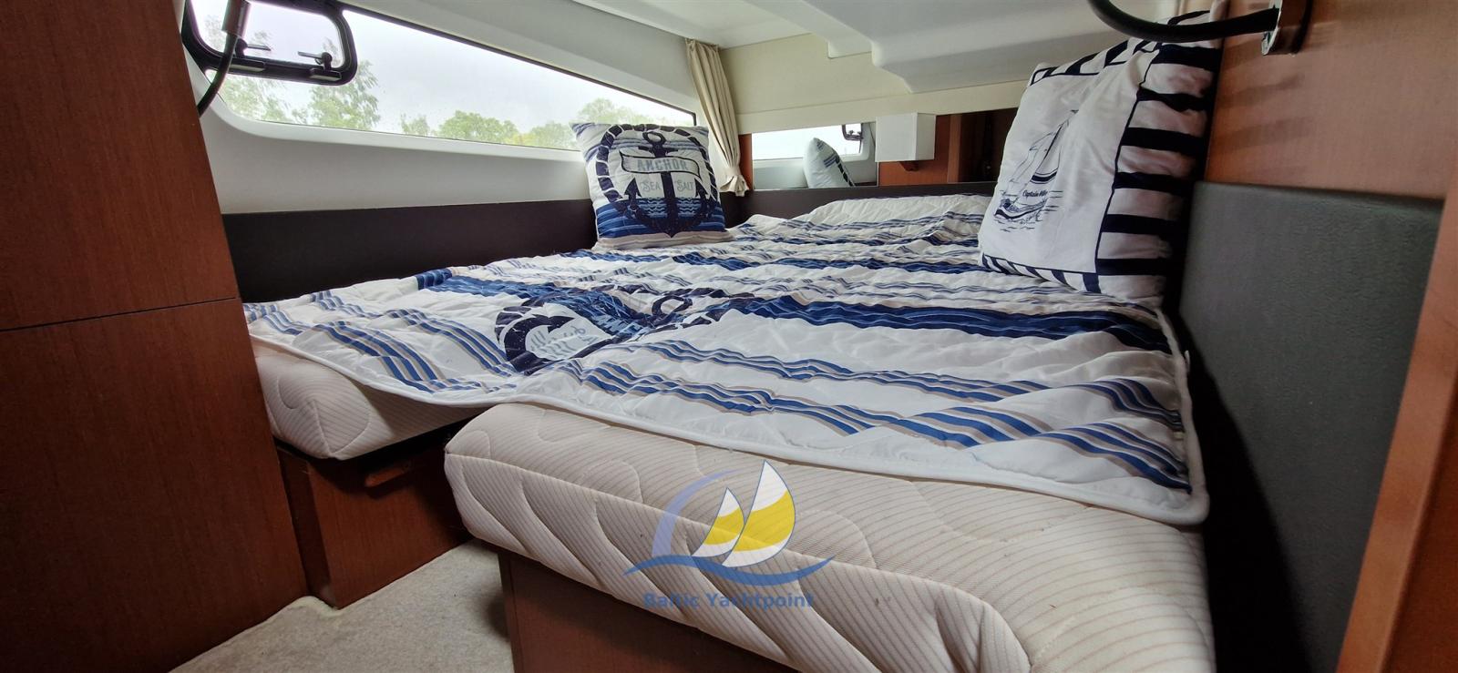 Ce Jeanneau Velasco 43F est en bon état et a été entretenu régulièrement par des professionnels. Certaines mesures visant à améliorer l’isolation sonore ont été incluses.