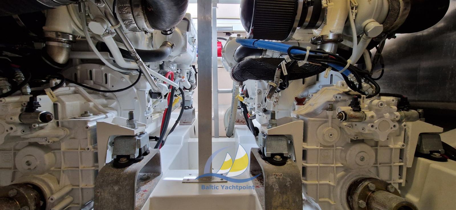 Alarme moteur, Alarme de pompe de cale, Eau sous pression, 8 Batteries, Filères, Douche de cockpit, Double barre à roue, Flaps électriques, Plateforme arrière, Pompe de cale automatique, Pompe de cale manuelle, Porte latérale, Porte latérale, Cockpit en teck, Prise de quai, Guindeau électrique, Echelle de bain, table de cockpit, Corne.