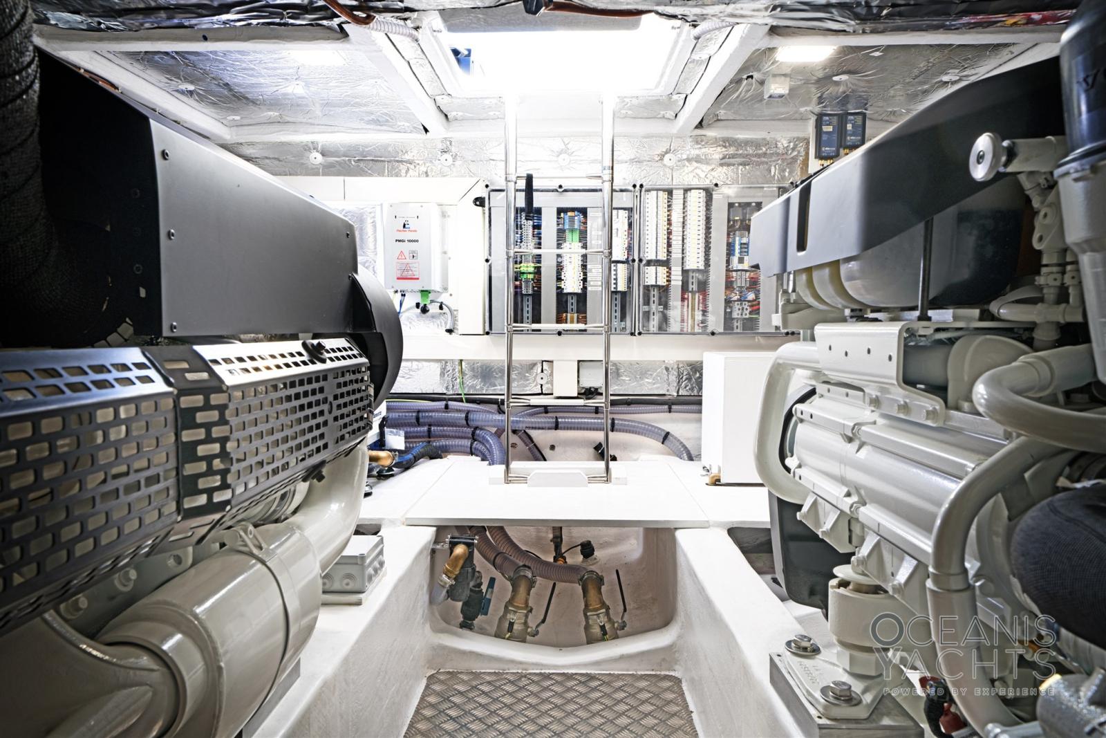 Alarme moteur, Alarme de pompe de cale, Alternateur, Eau sous pression, Trim hydraulique, Passavant en teck, Douche de cockpit, Garage à annexe, Indicateurs de flaps, Lavabo dans le cockpit, Éclairage de courtoisie, 8 Défenses, Passerelle (idraulica a scomparsa), Plateforme arrière (idraulica), Pompe de cale automatique, Pompe de cale manuelle, Pont en teck (fuge grigie), Porte latérale, Cockpit en teck (fuge grigie), Prise de quai, Connexion eau sous pression à quai, Guindeau électrique, Echelle de bain, table de cockpit (teak massello), Annexe, T-Top (carbonio).