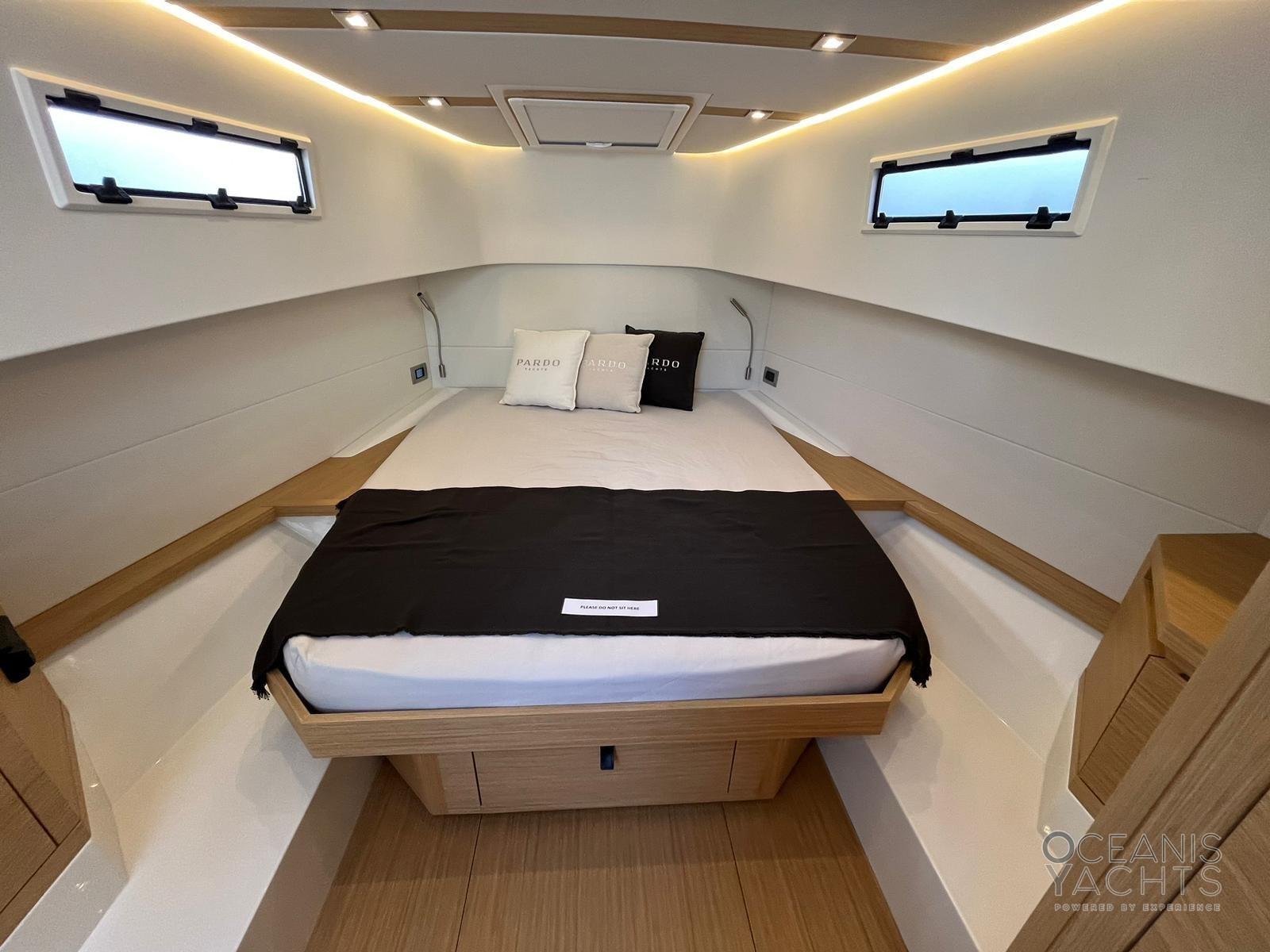 Bimini (elettrico integrato nel T-top), Sellerie complète, Taud de soleil (a prua con pali in carbonio).