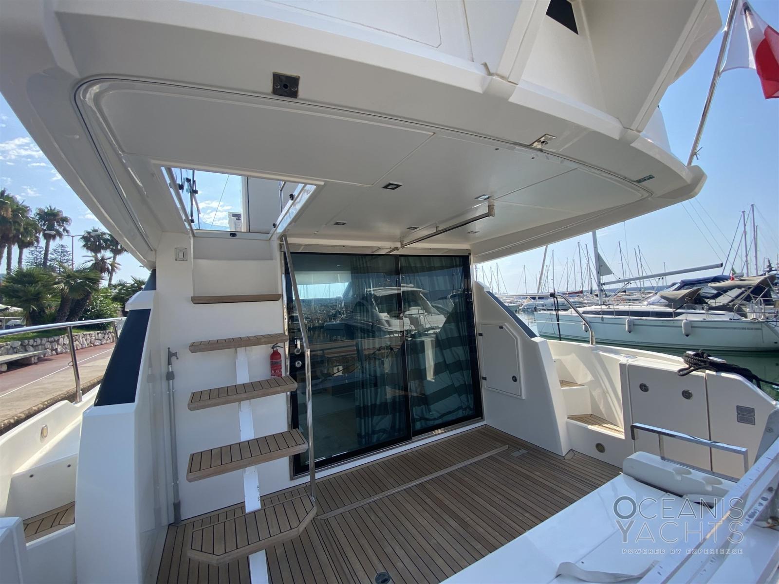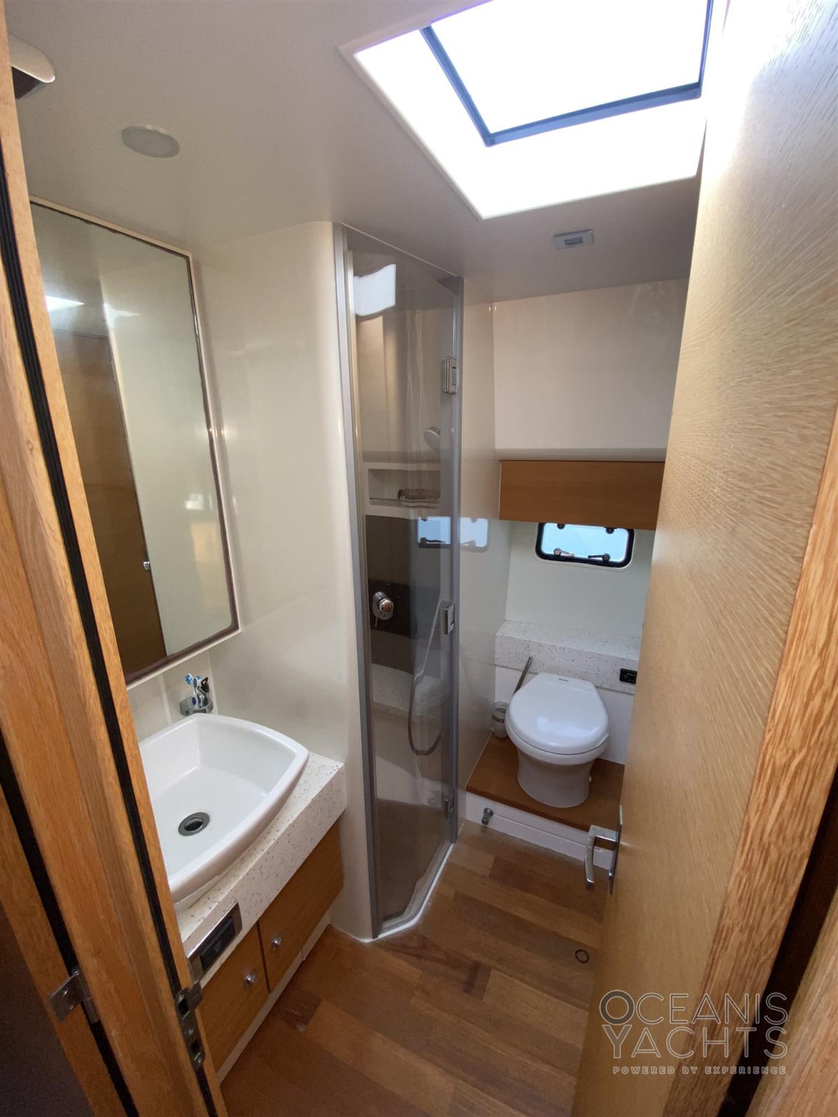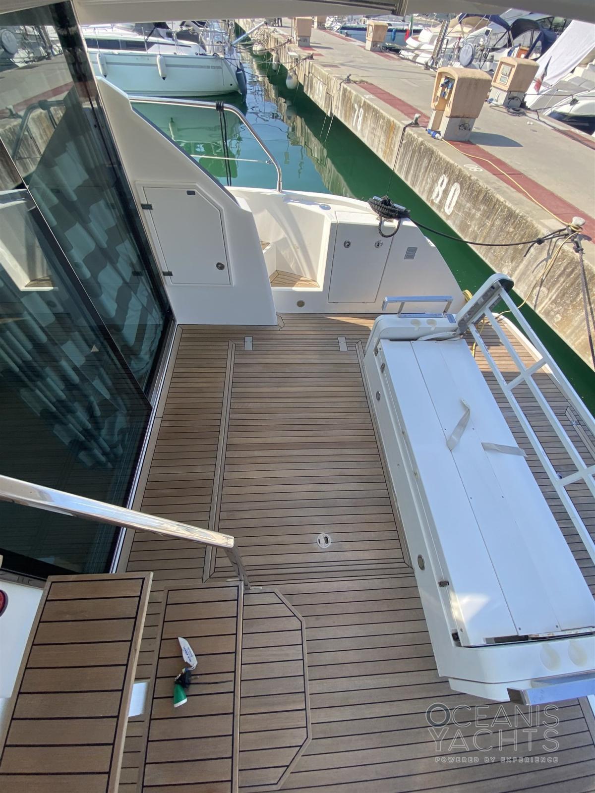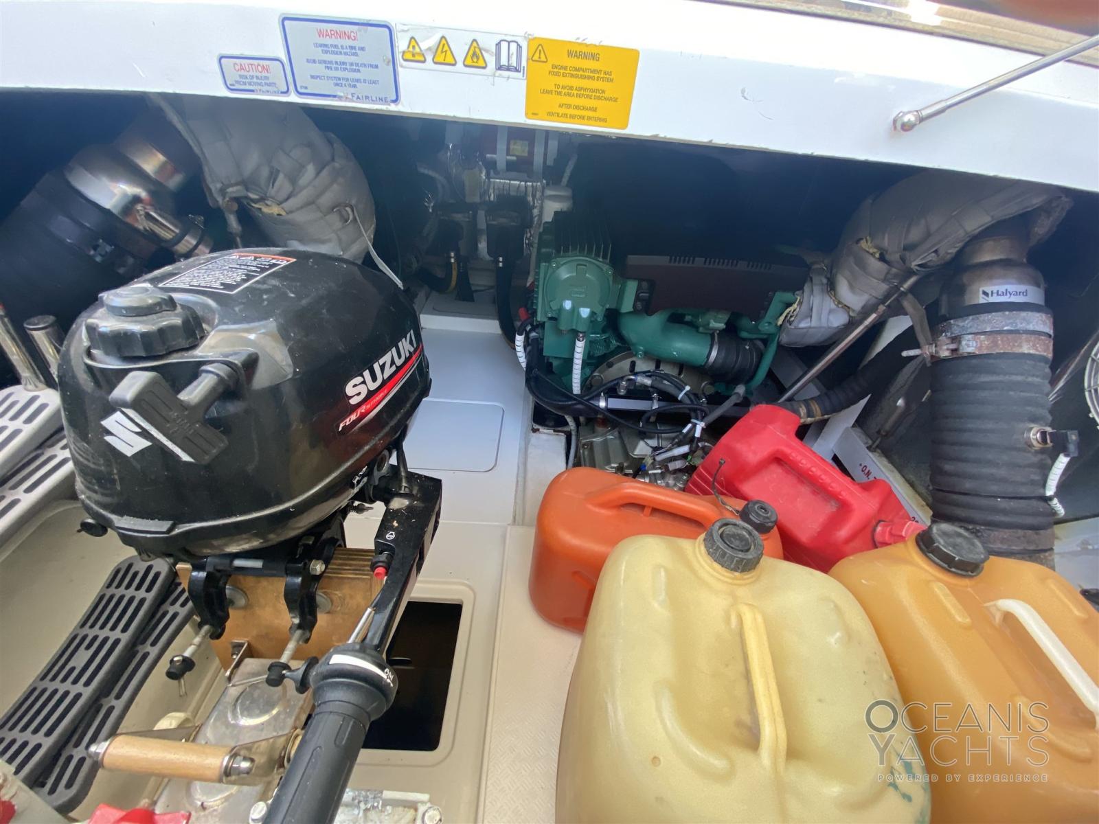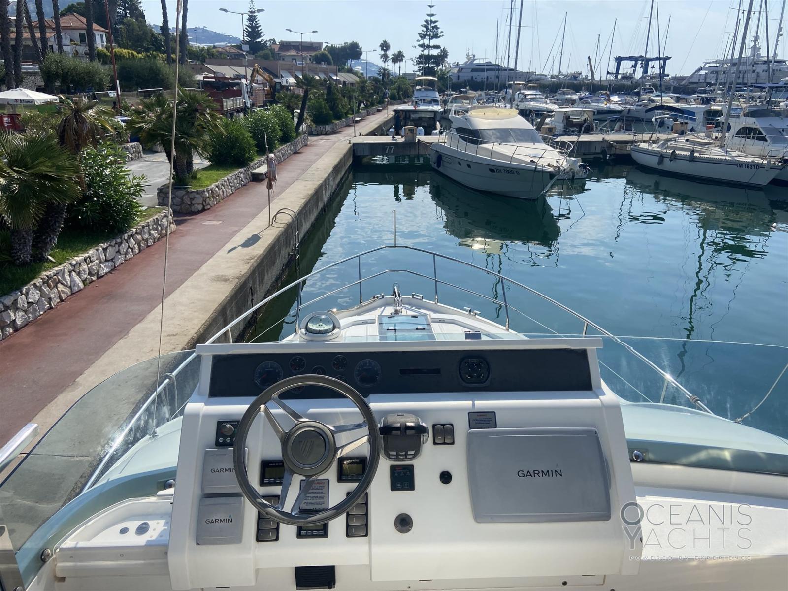 Alarme gaz, Alarme moteur, Alarme de pompe de cale, Eau sous pression, Douche de cockpit, Double barre à roue, Porte latérale, Prise de quai, Connexion eau sous pression à quai, Corne, Pont en teck.