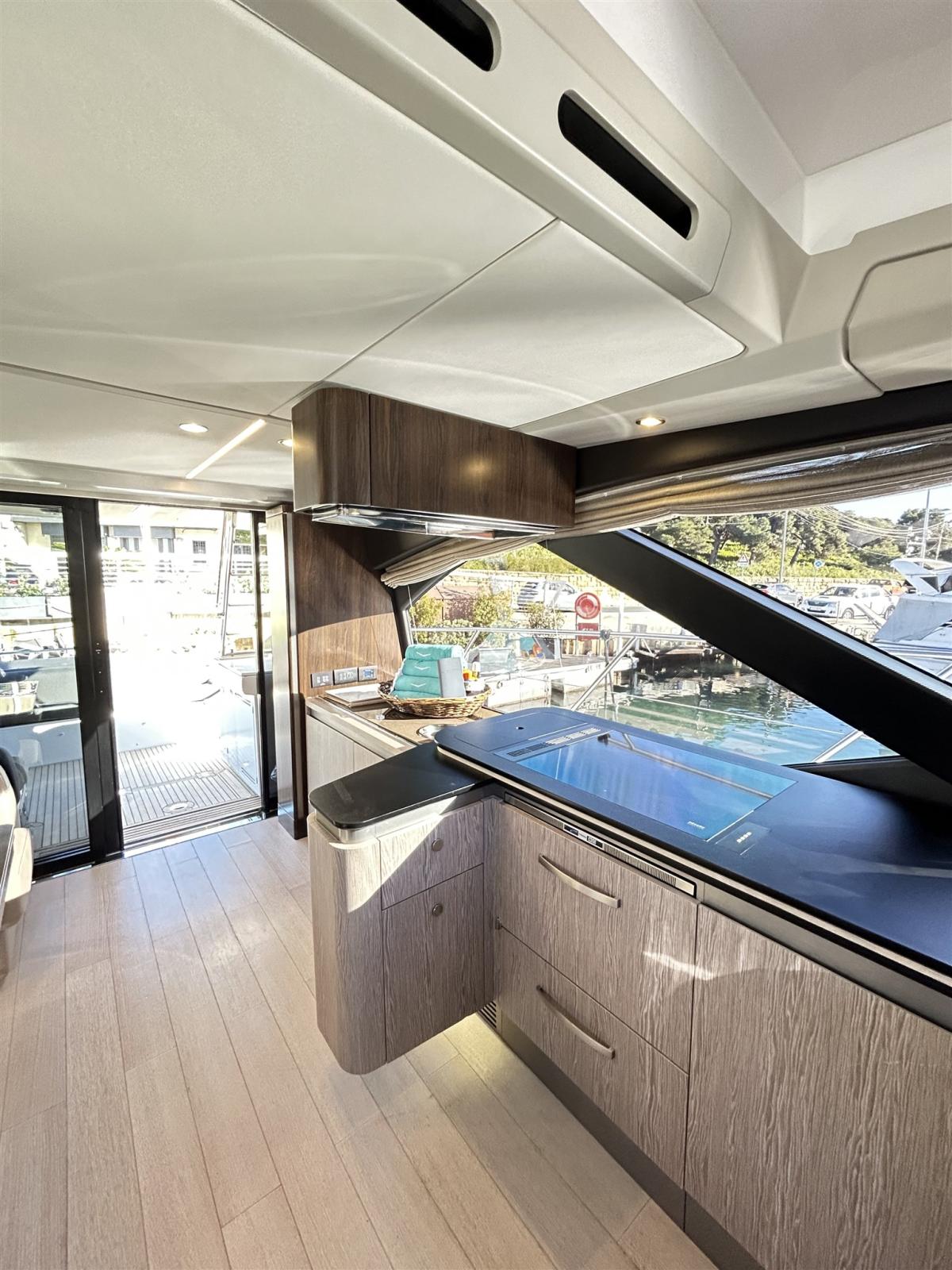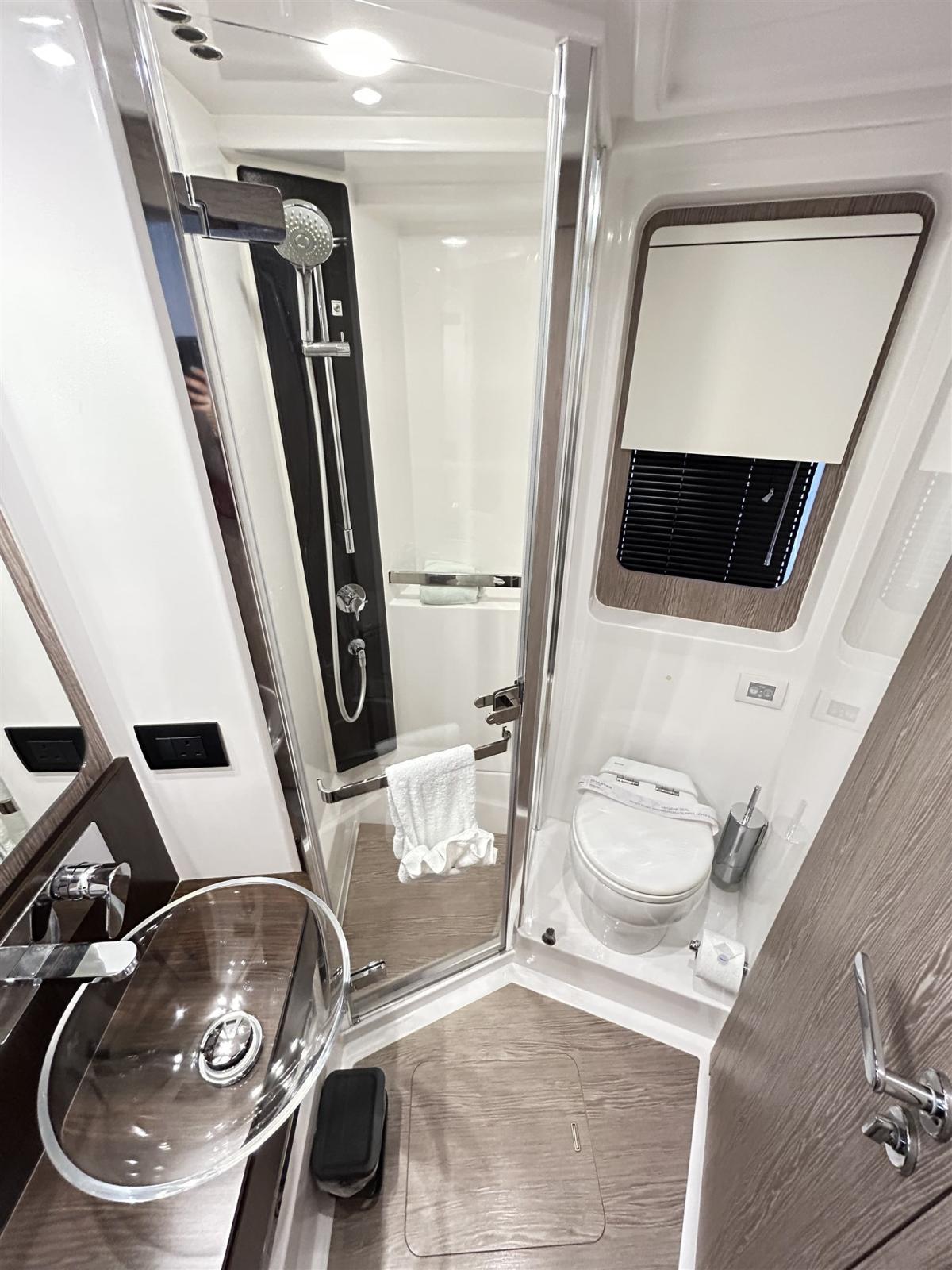 Alarme moteur, Alarme de pompe de cale, Eau sous pression, Trim hydraulique, Passavant en teck, Douche de cockpit, Extincteur(s) fixe(s), Jet Boat, Lavage de chaine, Éclairage de courtoisie, Spots sous-marins, Passerelle, Plateforme arrière, Pompe de cale automatique, Pompe de cale manuelle, Cockpit en teck, Guindeau électrique, Echelle de bain, table de cockpit, Annexe, Corne, Winch électrique avant.