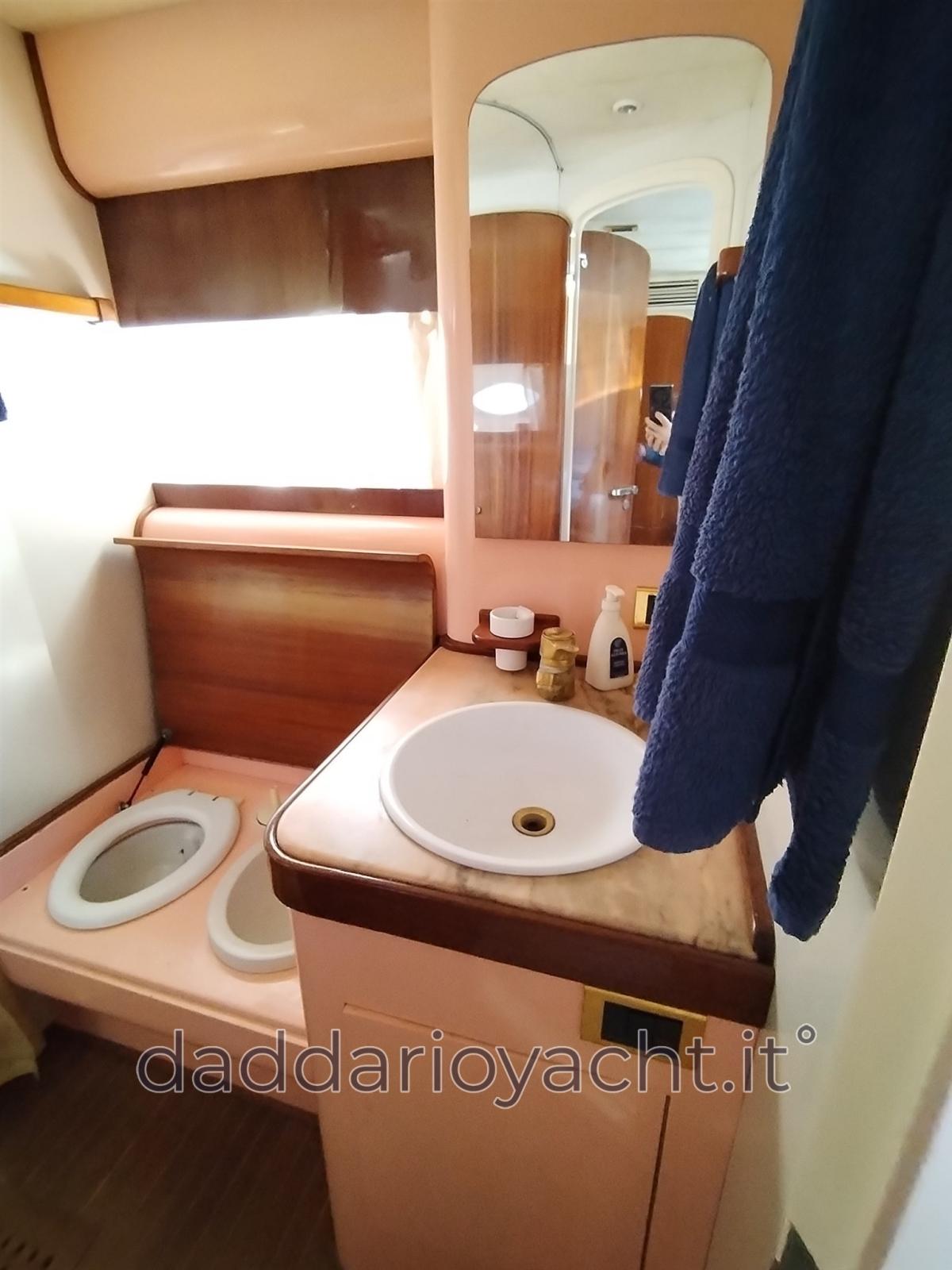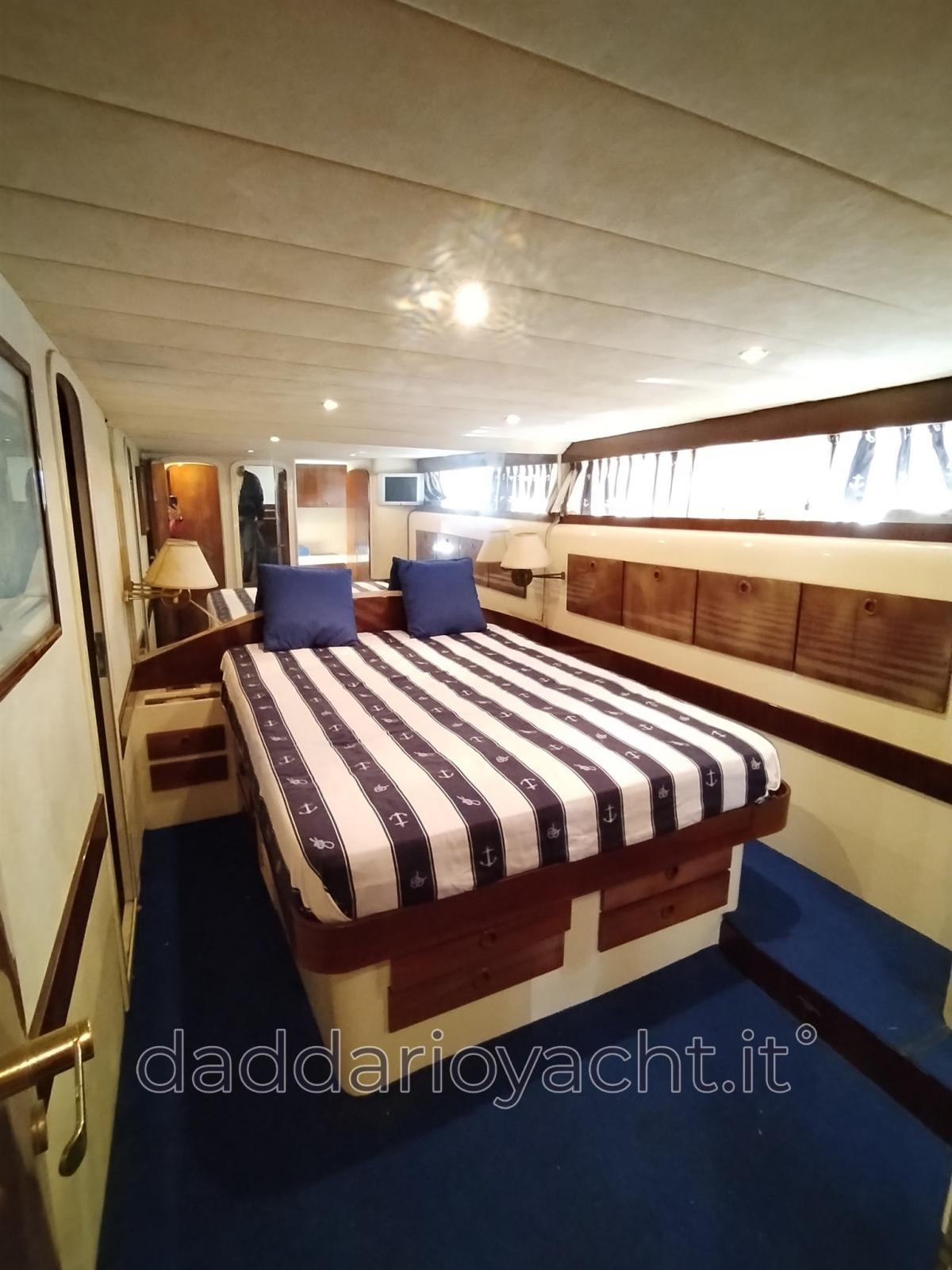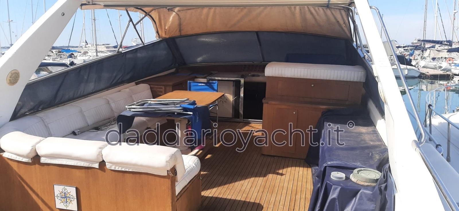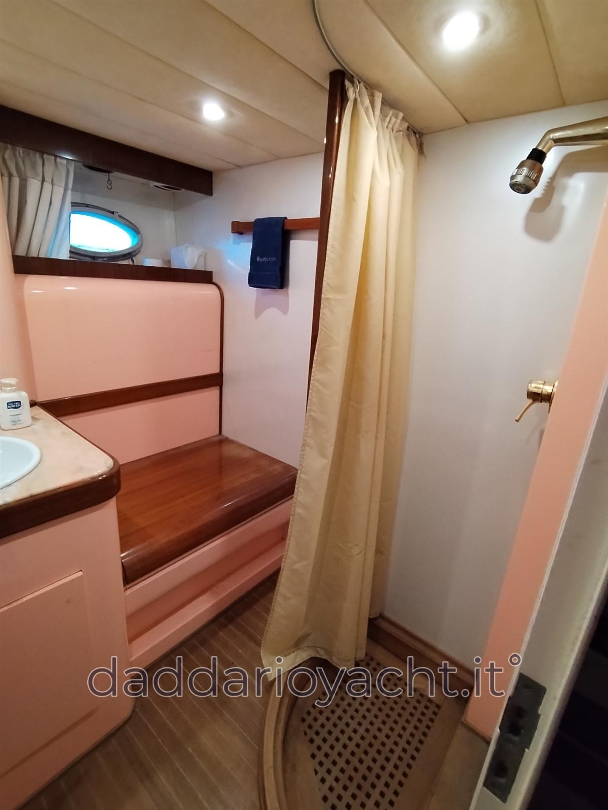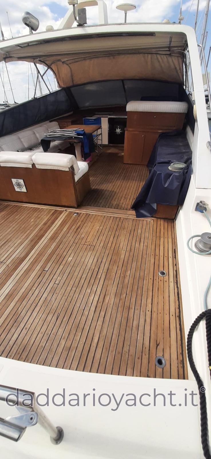 Alarme moteur, Alarme de pompe de cale, Ancre (Bruce 30kg inox+100mt catena inox), Eau sous pression, 9 Batteries (8x200ah+1x100 gen), 2 Chargeur de batterie (separati), 3 Douche de cockpit, Propulseur d'étrave (+3 comandi), Phare de poursuite, 2 Extincteur(s) fixe(s) (automatici sala motori), Lavabo dans le cockpit, Éclairage de courtoisie, Passerelle (Besenzoni), Plateforme arrière, Pompe de cale automatique, Pompe de cale manuelle, Porte latérale, Cockpit en teck (da rifare i comenti), Prise de quai, Rollbar, Guindeau électrique, Echelle de coupée, Echelle de bain, Selles pour Annexe, table de cockpit, Table pliante de salon, Annexe (3.50 no motore), Filières avec sortie latèrale, Corne, 2 Winch électrique arrière.