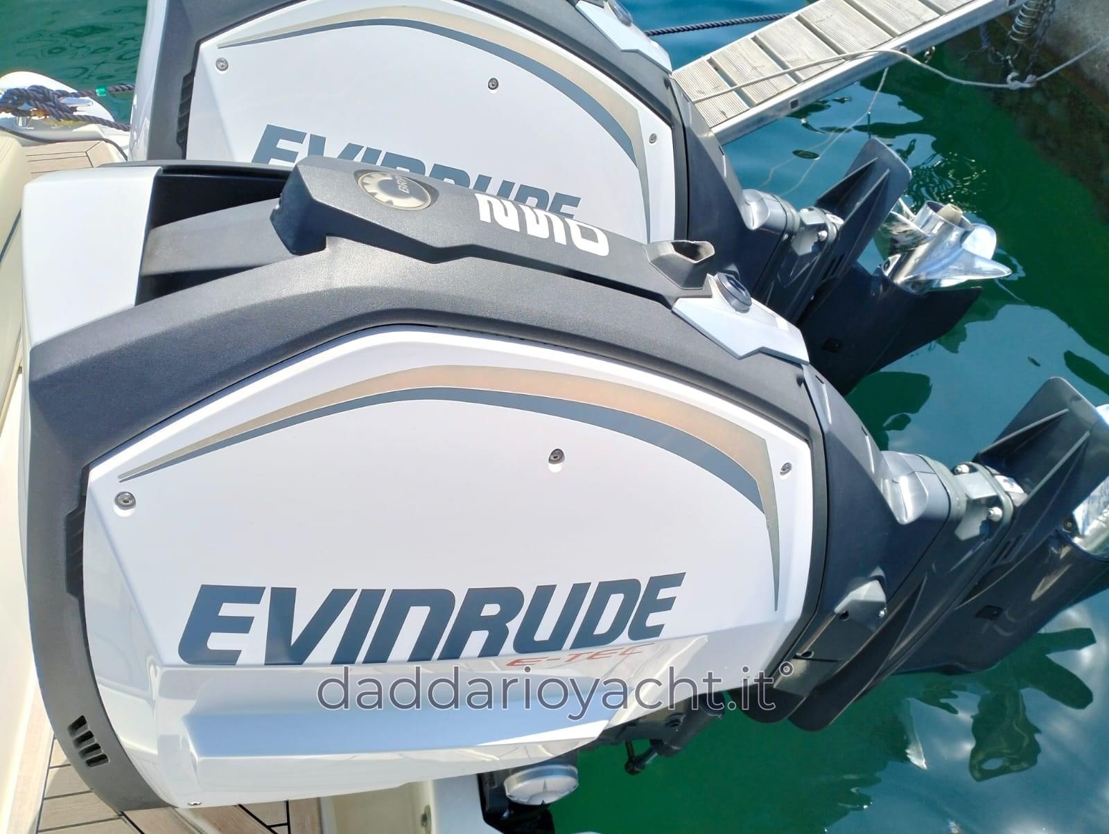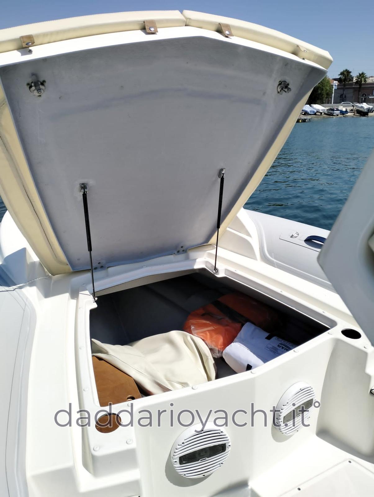 Tige lumineuse en acier inoxydable 360 ° LED; Bornes en acier inoxydable pour l’amarrage; Console de conduite complète avec pare-brise, tientibène en acier inoxydable, porte-instruments, timonerie, siège avant deux places; Boulons externes en acier inoxydable pour l’amarrage et le remorquage;