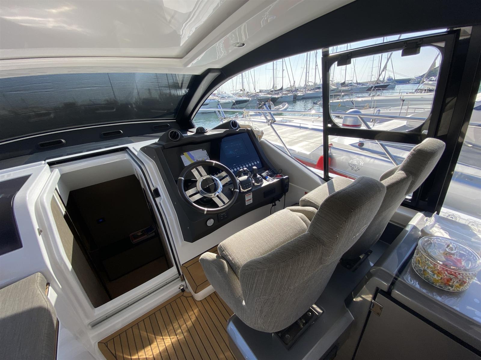 AIS (Garmin AIS800), Antenne radar (Garmin GMR Fantom 18), Compteur de chaîne, Pilote automatique (Volvo), Plotter GPS (Volvo Glass Cockpit 8610xsv), Radio VHF (315i), Siège copilote.