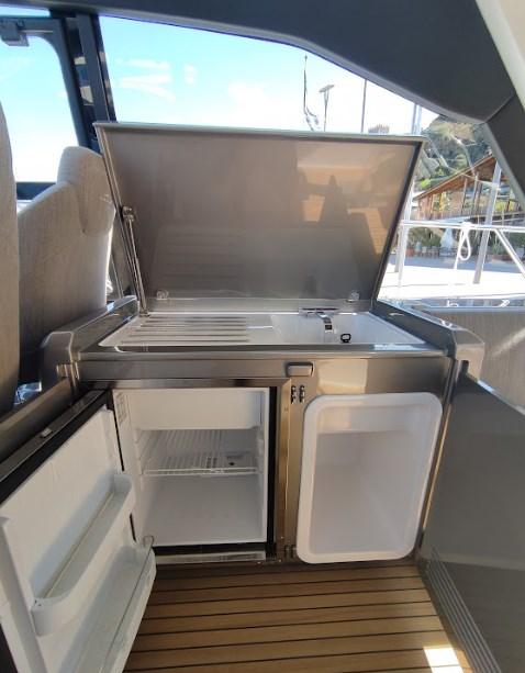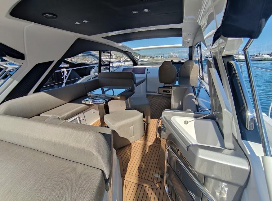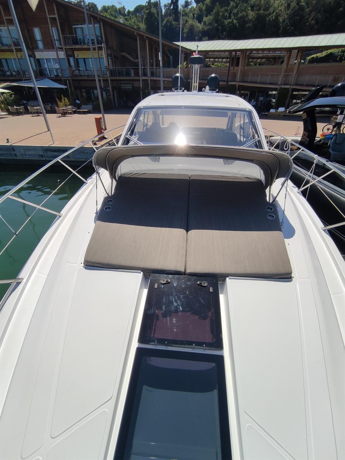 Bimini (cocoon a prua), Taud de cockpit, Sellerie complète, Coussins arrieres, Coussin avant (schienali reclinabili prua +cocoon), sellerie de cockpit (Batyline grey), Tauds de pare-brise (laterali + frontale).