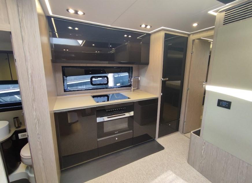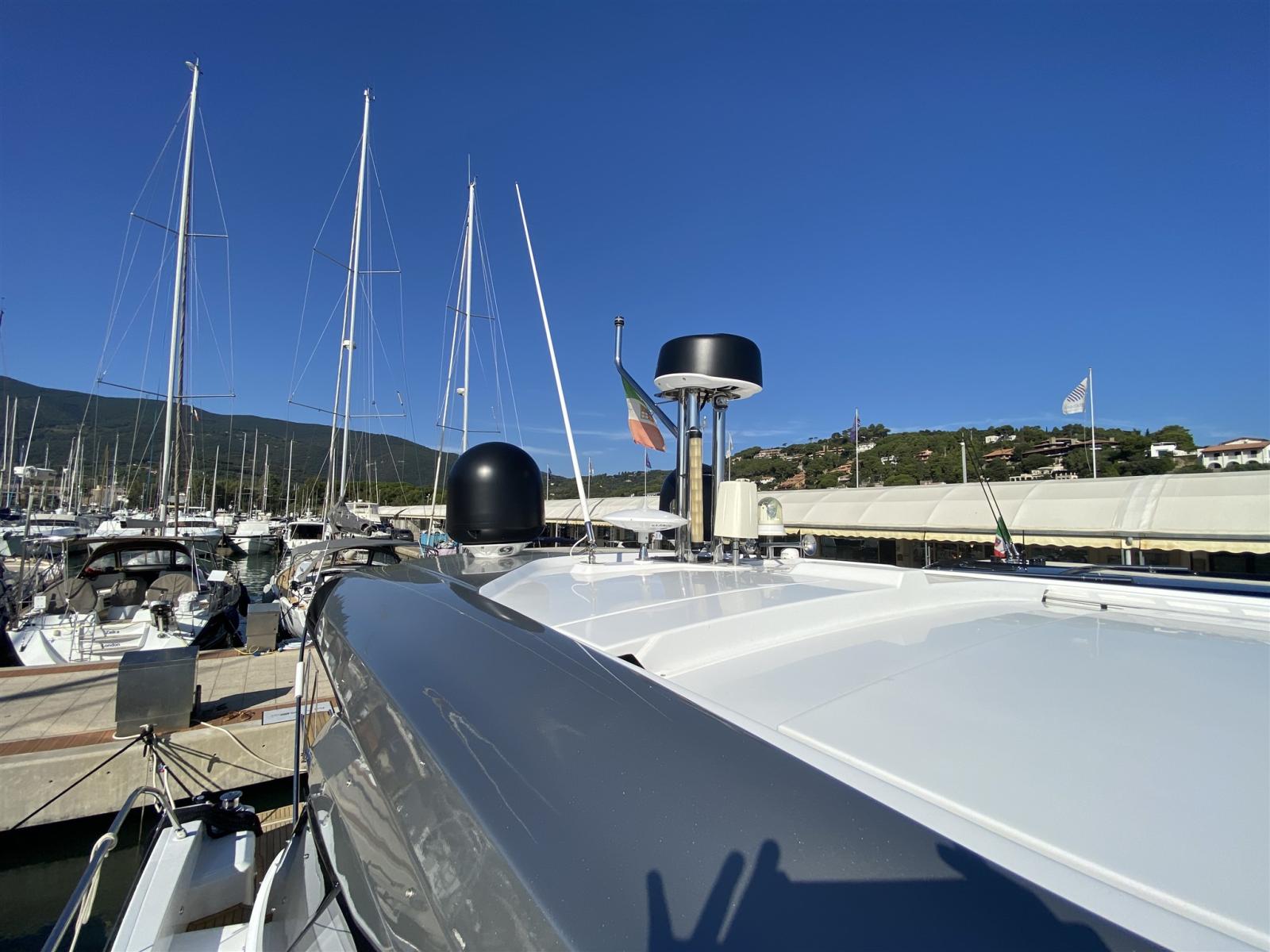 Ancre (80 m), Couleur spéciale (satin black domes - hull, hard top Urals Grey), Douche de cockpit (Elka in carbon fiber), Garage à annexe (con verricello), Hard top, Indicateurs de flaps, 4 Spots sous-marins, Passerelle (a scomparsa Opacmare), Plateforme arrière (up&down in teak), Cockpit en teck, Connexion eau sous pression à quai, Stabilisateurs (Seakeeper NG6), table de cockpit (top finitura carbonio), Table pliante de salon (upgrade).
