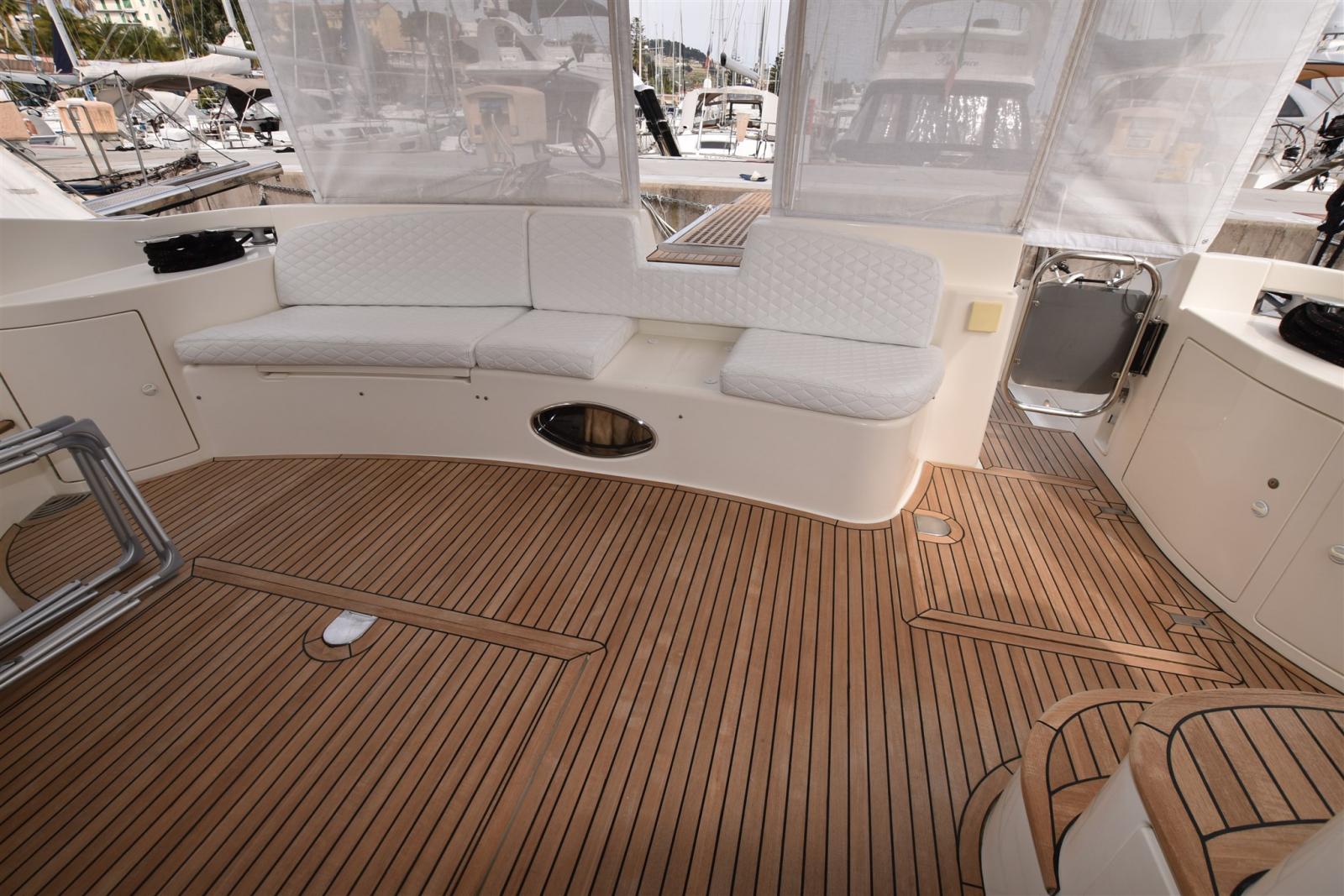 Bateau en excellent état, année 2021 révision générale et mise au point des systèmes électriques, hydrauliques et de climatisation, composants et mobilier tous en parfait état de fonctionnement avec remplacement des équipements et composants suivants : batteries, services et moteurs, raccourci GPS du fly bridge, VHF/AIS, sellerie intérieure, moquettes et cabines du carré, coussins extérieurs, bagues d’essieu, contre-alésage en teck, polissage de la coque. Année 2023 remplacement de l’autoclave, des pompes à eaux noires et grises. Entretien ordinaire et extraordinaire effectué annuellement sur le générateur et les moteurs avec nettoyage du système de refroidissement et des échangeurs de chaleur, remplacement des filtres et des prises d’eau, de certains raccords, tuyaux et vannes année 2022. En 2024, les collecteurs d’échappement des deux moteurs seront remplacés.